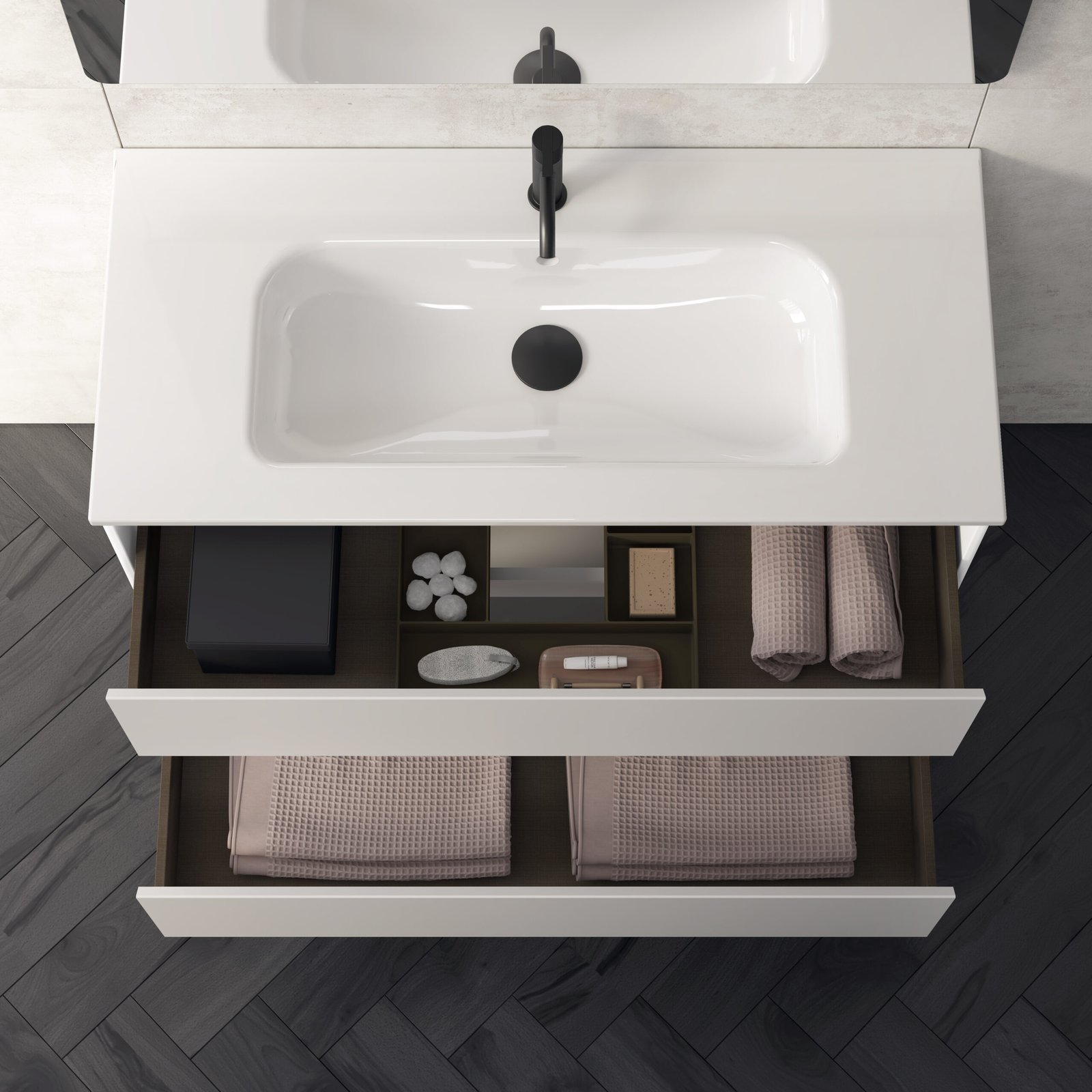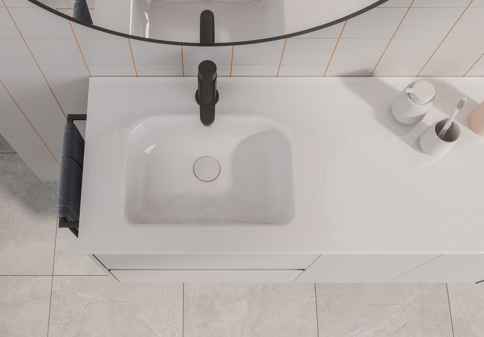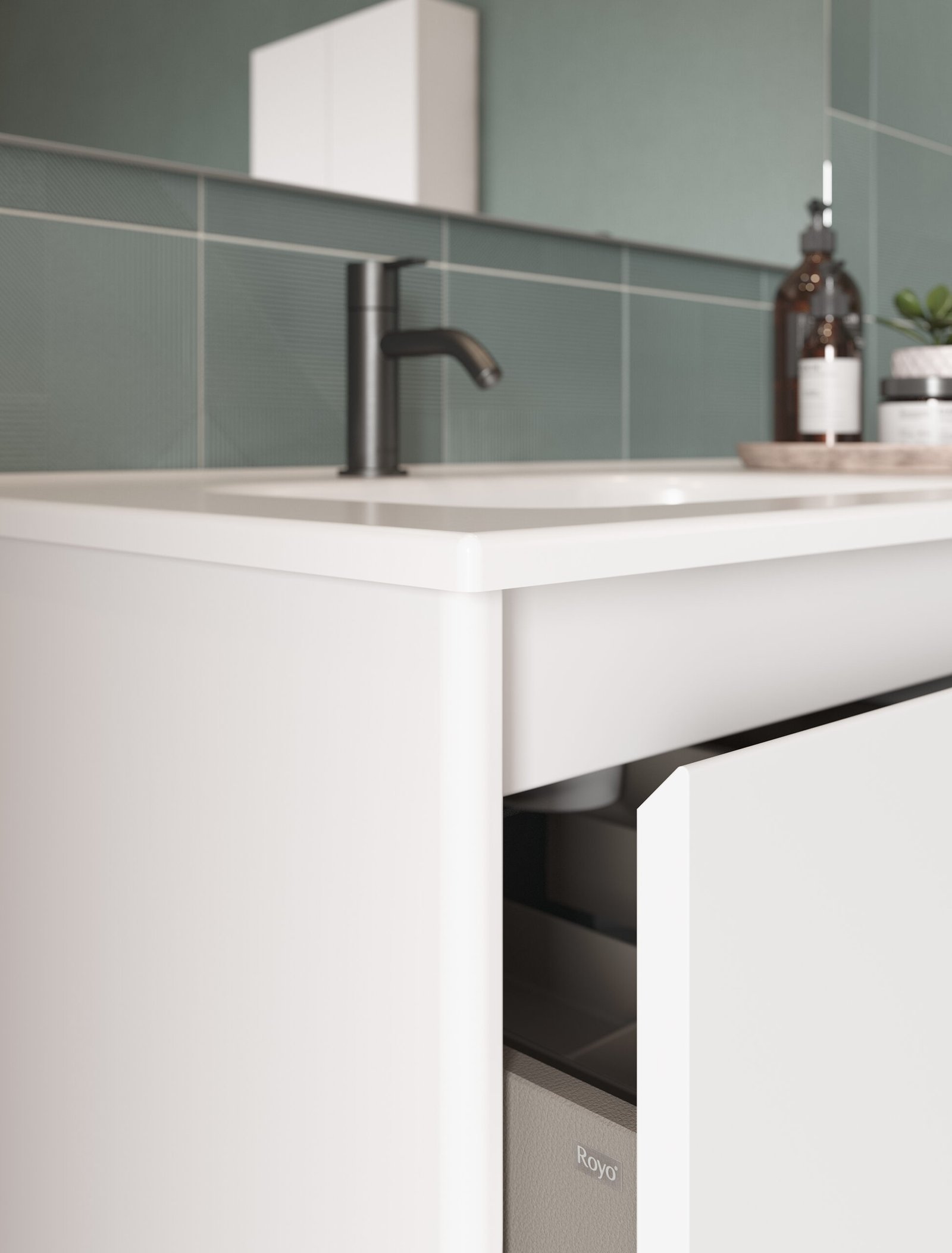 La col·lecció Alfa Compact de Royo Group és la resposta perfecta per a aquells projectes que busquen un bany on l’equilibri visual i el minimalisme prenguin el protagonisme. Aquesta sèrie destaca pel seu disseny atemporal de línies netes, suavitzades per uns elegants costats corbs que trenquen la rigidesa geomètrica, aportant harmonia i una estètica única a l’espai. El seu frontal pur i sense distraccions s’aconsegueix gràcies a un tirador totalment integrat, que reforça aquest estil net, continu i modern.