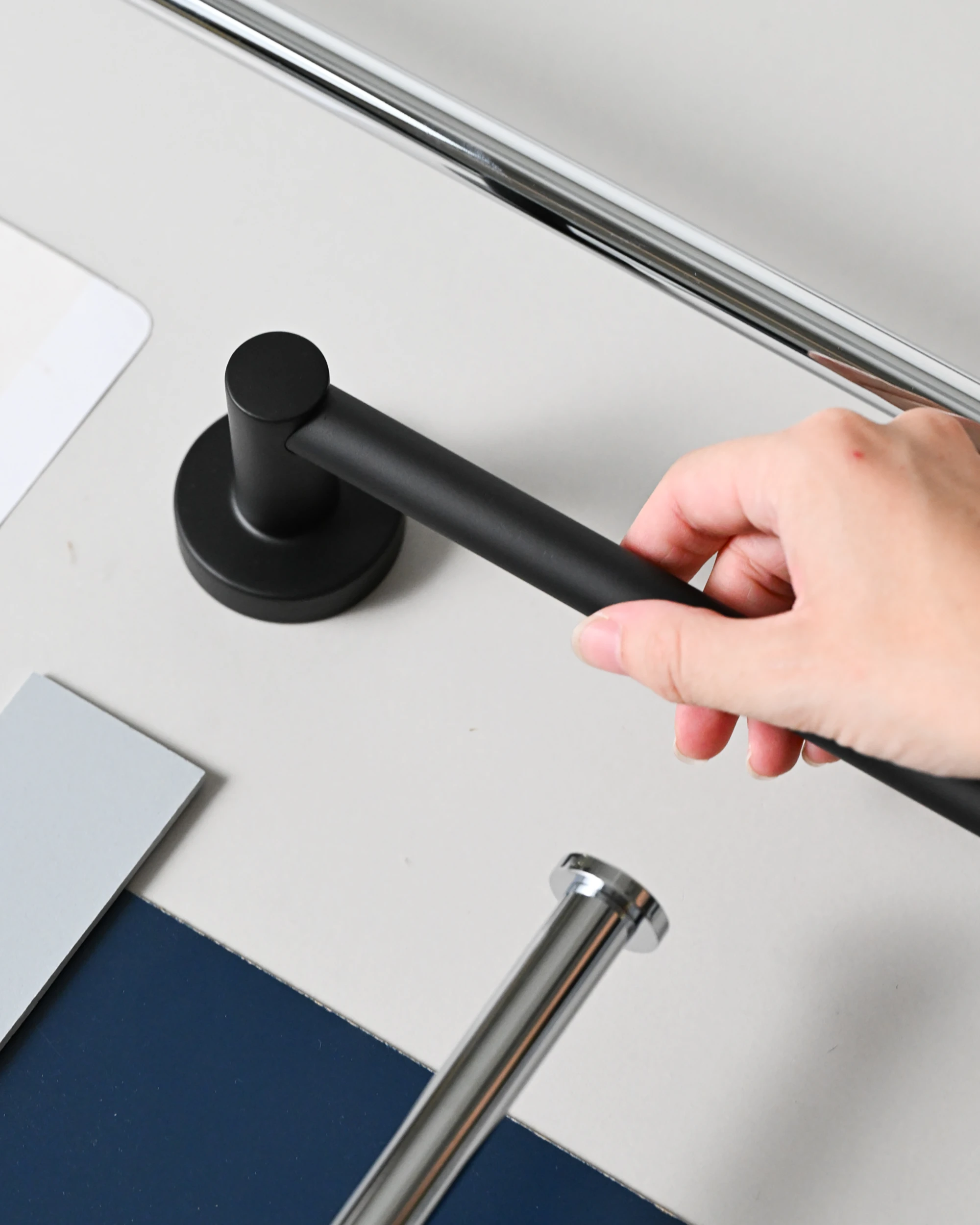 Astral destaca per la seva gran polivalència, oferint un catàleg molt complet per equipar cada zona del bany amb qualitat i estètica. Els seus dos acabats principals (el serè Negre mat i el lluminós Crom) permeten crear atmosferes completament diferents amb una mateixa base de disseny. A més, per a projectes hotelers o Contract, la col·lecció amplia el seu ventall amb exclusius acabats personalitzats (Copper, Champagne i Gold), elevant el luxe del bany a un altre nivell.