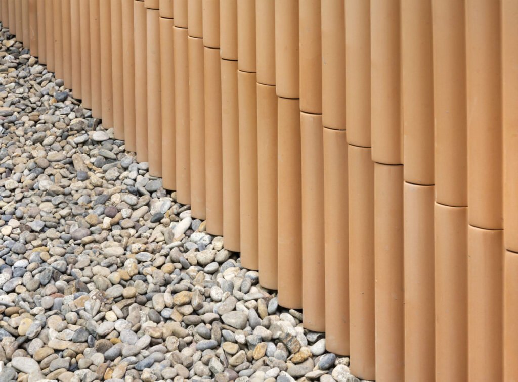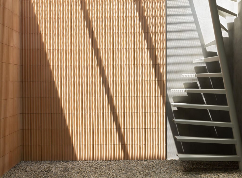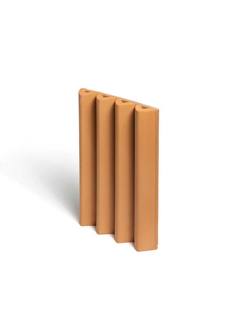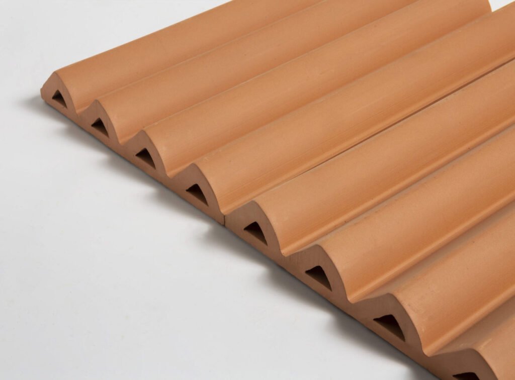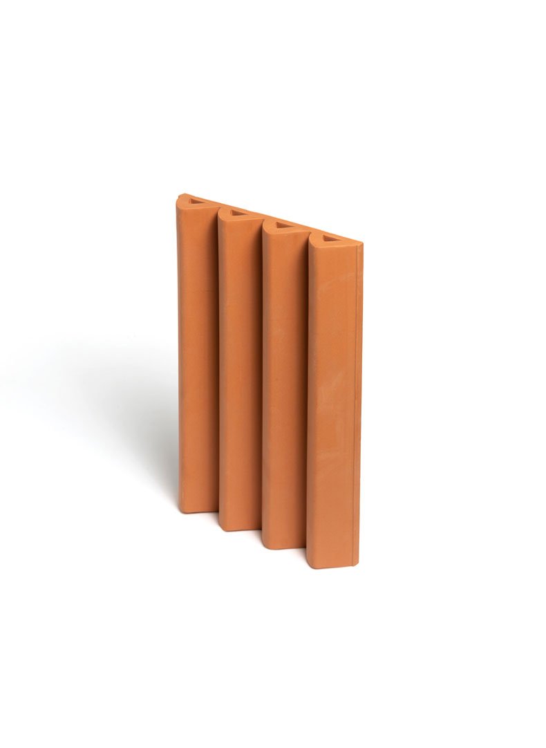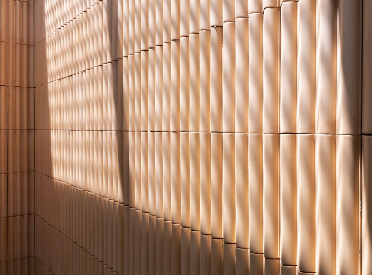 Revestiment ceràmic d’autor elaborat en autèntica terracota natural per Ceràmica Ferrés. Destaca pel seu relleu tridimensional d’ones asimètriques que aporten moviment al parament vertical.