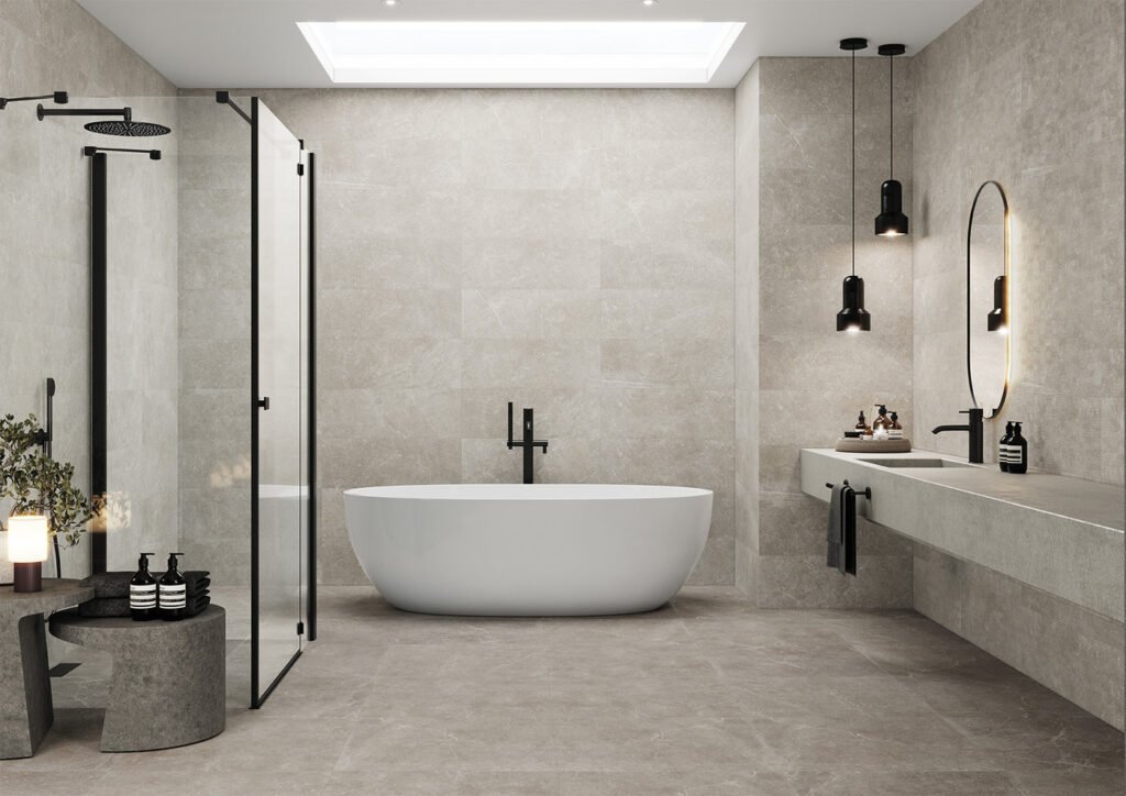 La versatilitat és el gran fort de Bleuemix. A terra, ofereix paviments de 120×60, 90×90 i 60×60 cm amb opcions de tacte “Soft” i “Antislip” per a exteriors. Per a les parets, compta amb revestiments majestuosos de 40×120 cm (juntament amb formats de 25×70 cm) que inclouen peces de relleu tridimensional (“Concept” i “Art”). Tot disponible en una paleta sòbria: Taupe, Grey, Black, Beige i White.