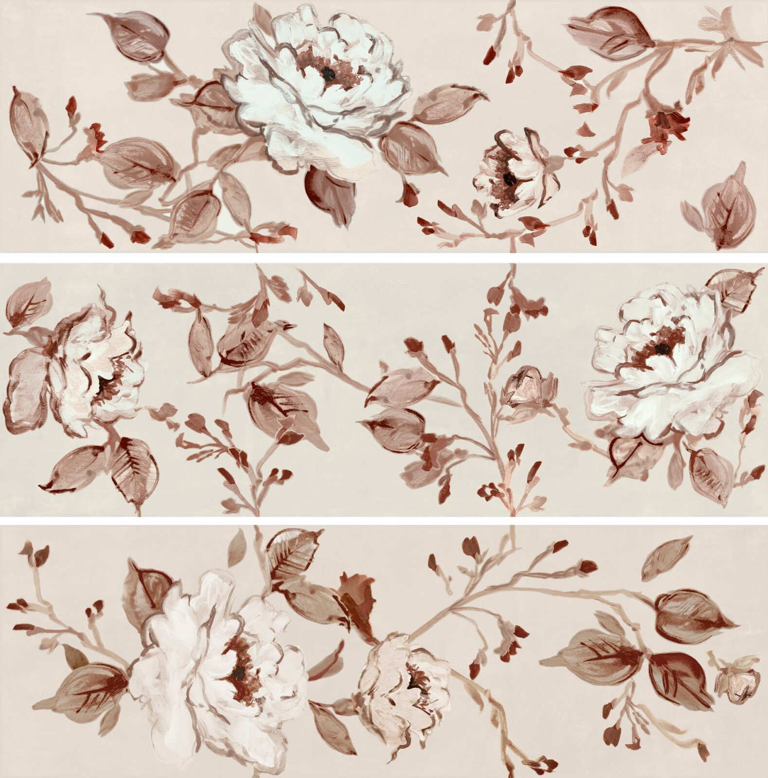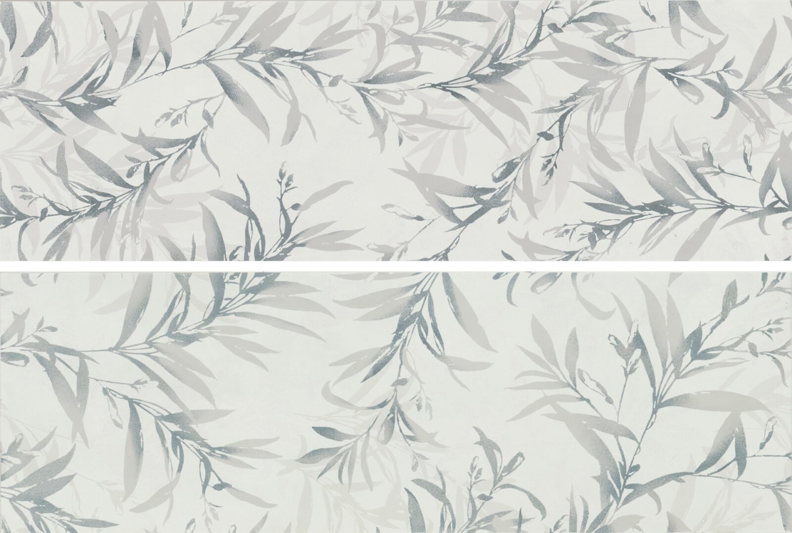 S’ofereix en un refinat format apaïsat de 25×76 cm, presentant una paleta de 6 tons pastís i suaus (White, Grey, Ivory, Pink, Clay i Blu). A banda de la peça llisa, sorprèn amb la seva atractiva versió de relleu tridimensional “diamant”, ideal per crear parets d’accent. A més, es complementa amb dos decorats preciosos: “Melody” (d’efecte aquarel·la) i “Foliage” (un relleu botànic amb detalls subtilment iridescents).
