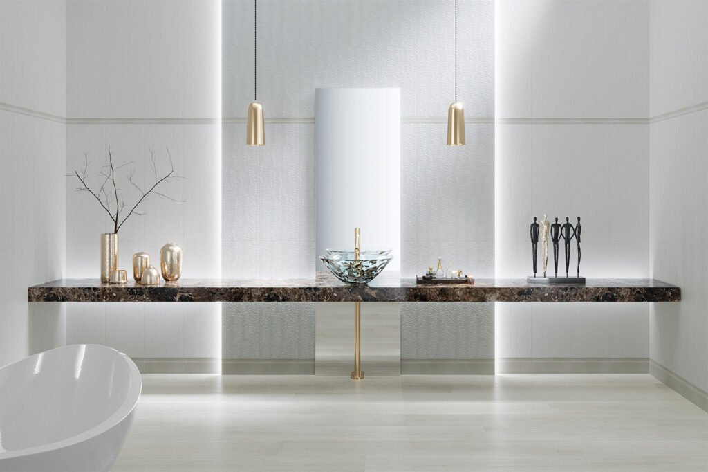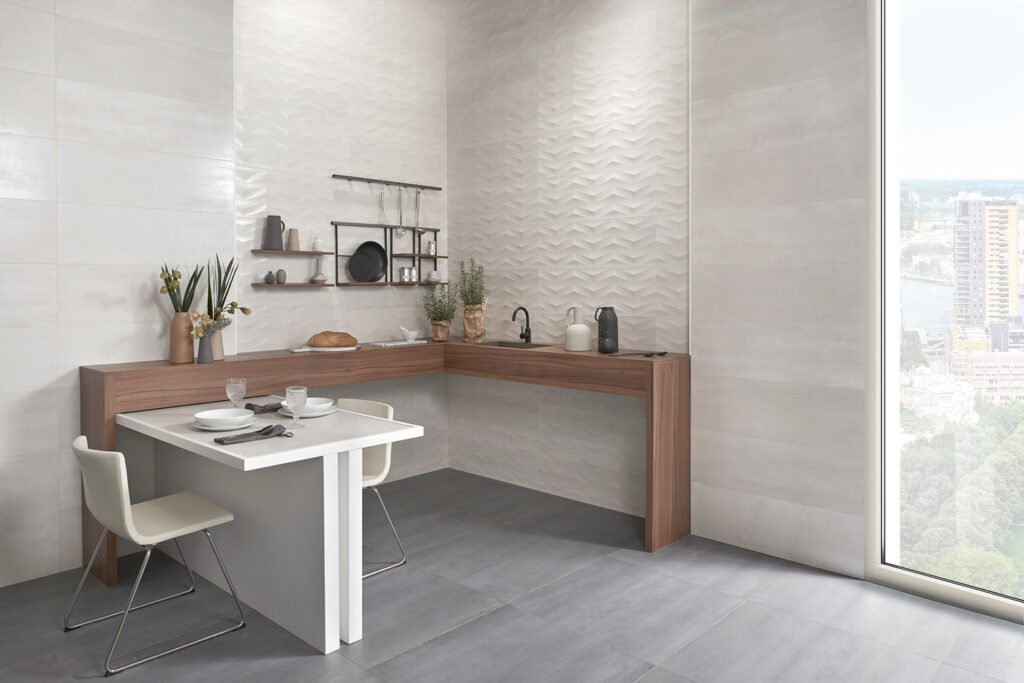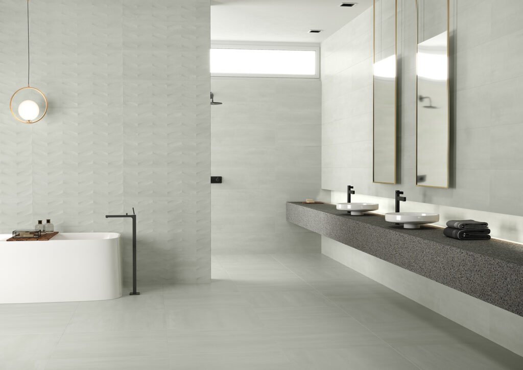 A diferència d’altres metalls foscos o sobrecarregats, Elven aposta per una gràfica lluminosa i extremadament versàtil. Presentada en un còmode format quadrat de 60×60 cm i en dos tons neutres (Blanco i Gris), aquest paviment aconsegueix capturar la subtilesa dels reflexos metàl·lics sense enfosquir ni saturar l’estança.