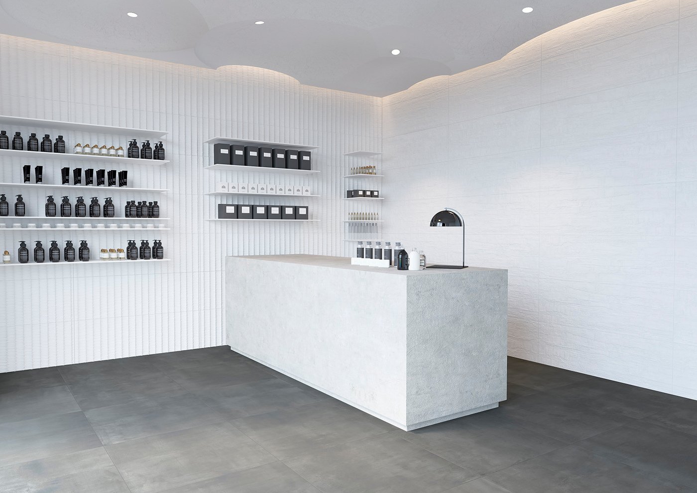 Concebuda exclusivament per a parets interiors, la sèrie s’ofereix en revestiment de pasta blanca amb formats molt versàtils (30×60 cm i el gran format de 40×120 cm). Totes les peces es presenten en un lluminós color blanc i juguen amb diferents textures i relleus com el “Concret”, el “Rock” (més petri) i el “Linen” (d’efecte tèxtil), proporcionant un suau dinamisme visual sense trencar la calma de l’estança.