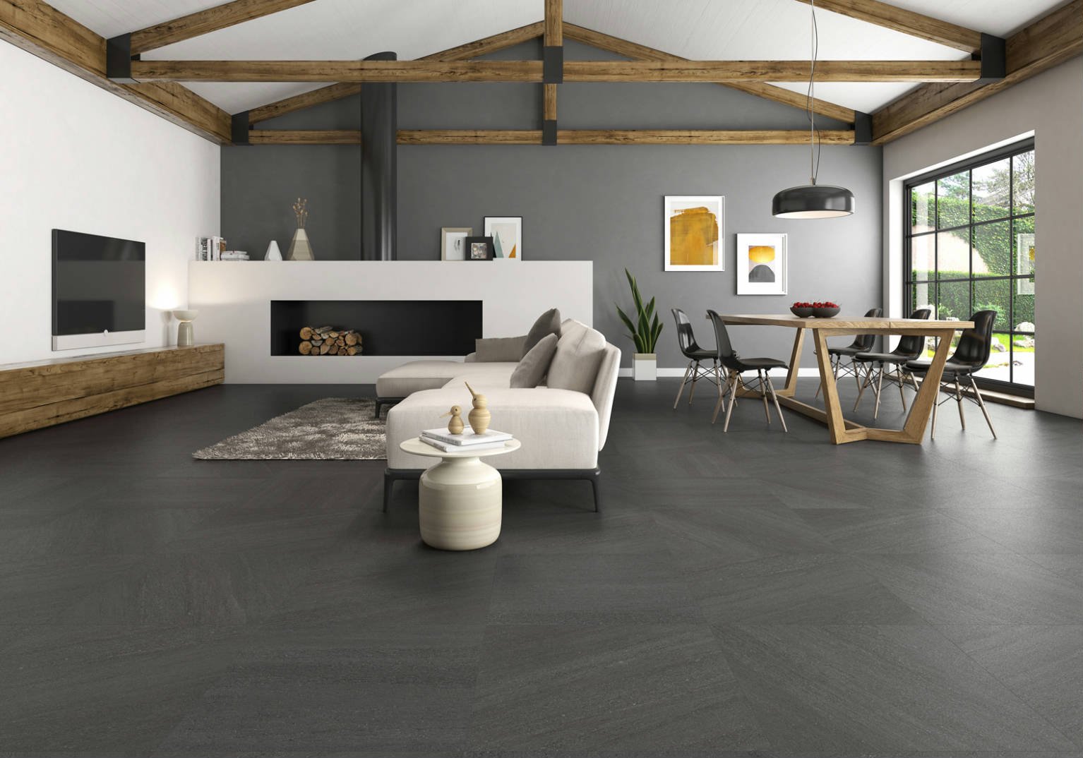 L’essència de l’arquitectura industrial moderna per crear espais neutres i d’àmplia continuïtat visual. Aporta un caràcter sòlid i minimalista amb una superfície ultraresistent.