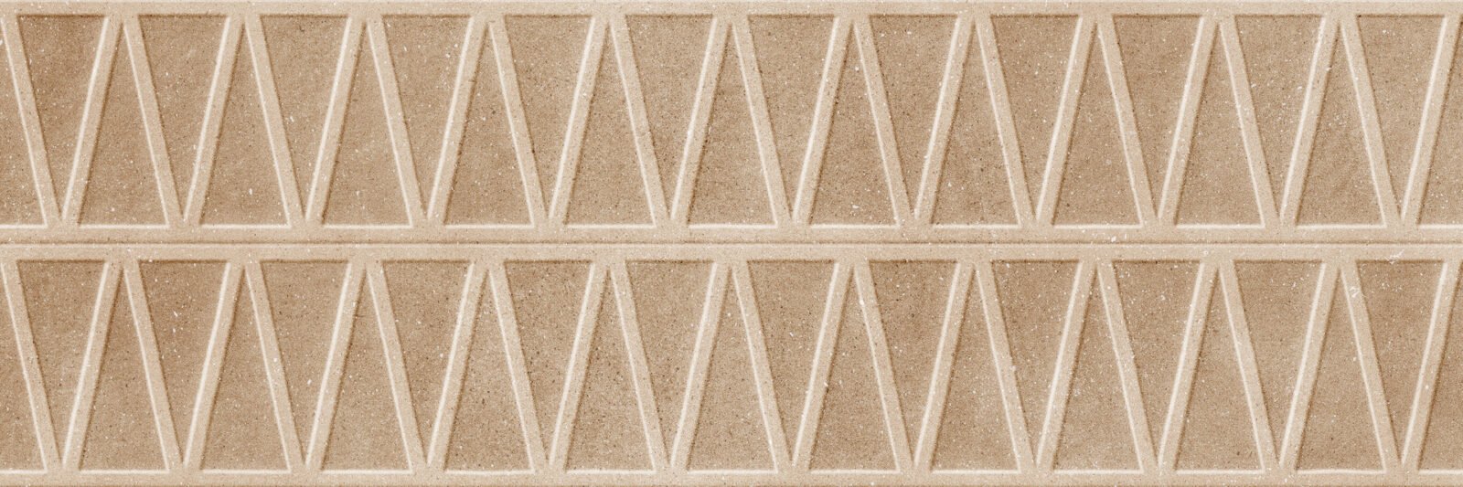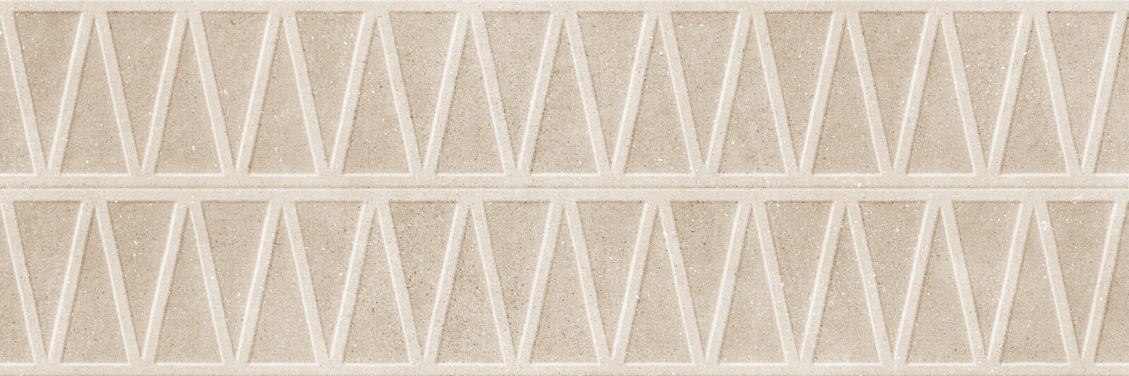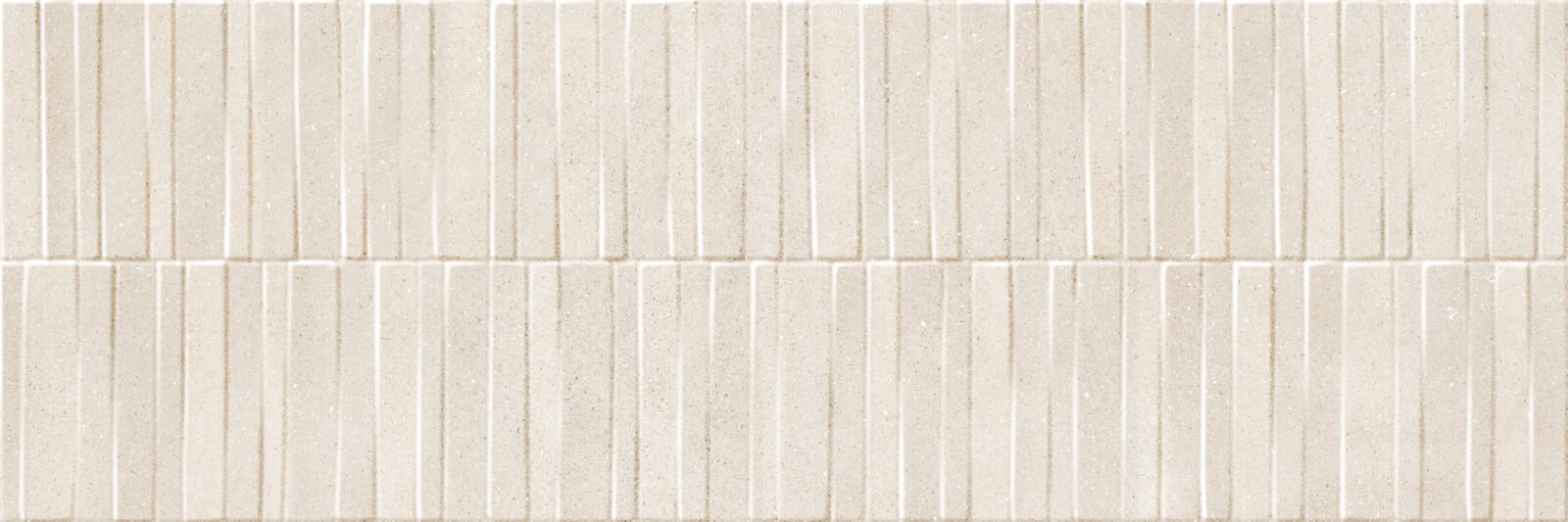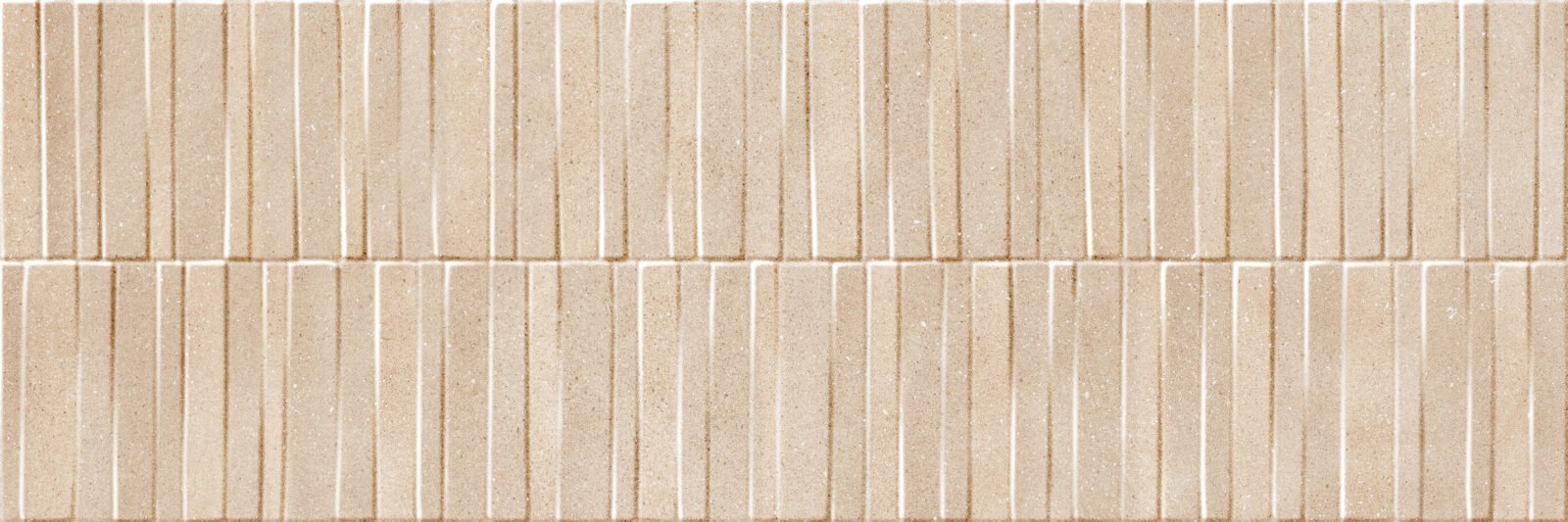 Presentada en format apaïsat de 40×120 cm, la sèrie no només ofereix fons llisos en tons càlids i freds (Pomice, Calce, Gesso i Cromo). Sorprèn amb decorats majestuosos: “Myrtle”, un relleu de fulles amb tecnologia Touch (amb aplicació de graves per donar un toc matèric únic); “Hay”, amb triangles que evoquen els pallers tradicionals; i “Dash”, amb traços verticals irregulars que recorden els teixits.