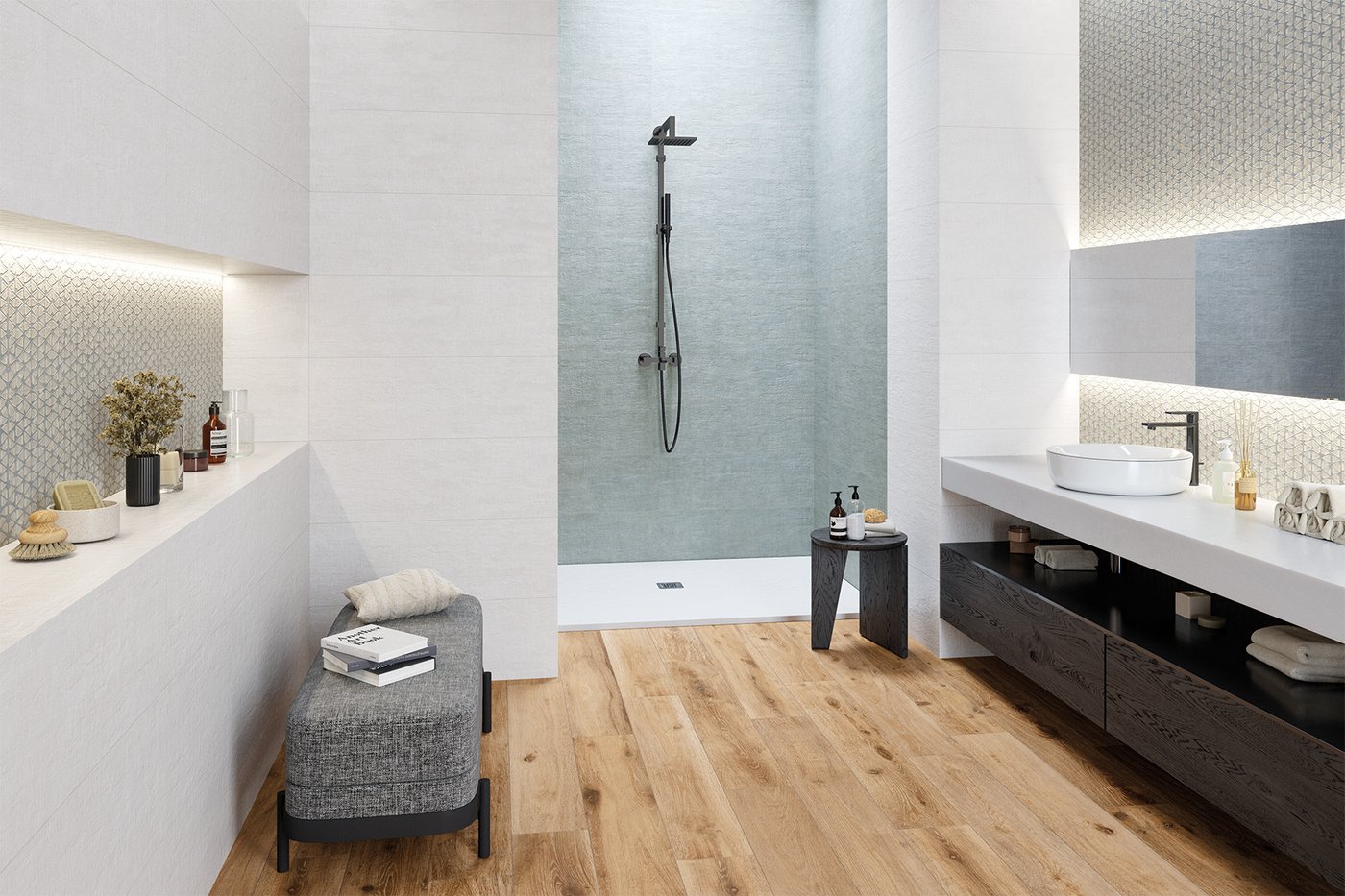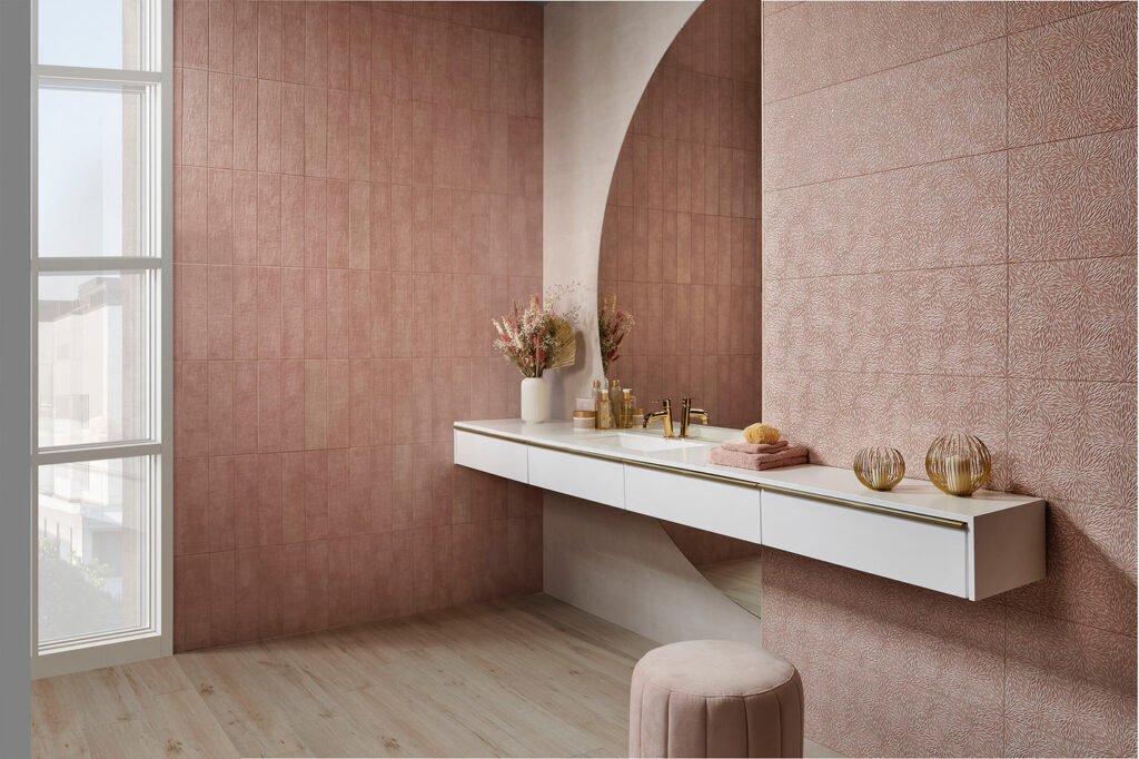 La gran fortalesa de la col·lecció és la seva extensa paleta cromàtica. S’ofereix en format de 30×90 cm i en fins a nou colors absolutament tendència (Vison, Terracota, Azul, Marfil, Blanco, Ocean, Salvia, Perla i Grafito). I per a les zones d’accent (com la dutxa o el frontal del lavabo), inclou les espectaculars peces en relleu 3D “Concept” i “Art”, que dinamitzen completament el disseny.