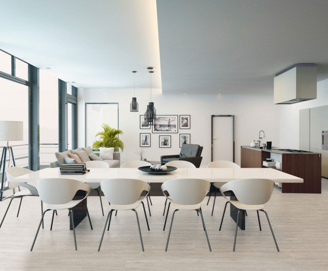 L’essència de l’arquitectura industrial moderna per crear espais neutres i d’àmplia continuïtat visual. Aporta un caràcter sòlid i minimalista amb una superfície ultraresistent.