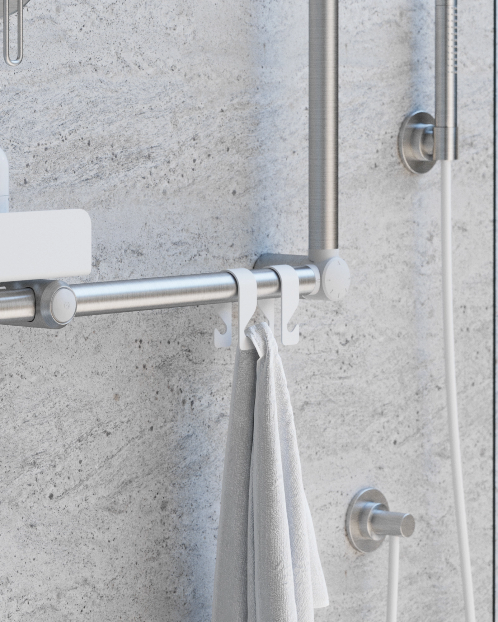 El que fa veritablement única a la col·lecció Go Care és la seva sorprenent versatilitat. El sistema compta amb suports lliscants i eixos giratoris que permeten ajustar les barres a qualsevol racó, necessitat o espai, suportant fins a 150 kg de pes. A més de les tradicionals barres fixes i angulars, la sèrie inclou solucions avançades com les barres de suport abatibles (que es poden desinstal·lar fàcilment ocultant la fixació amb una tapa embellidora) i una línia de complements extra —com repises de dutxa, suports per a mànec de dutxa i portarotlles integrats— que aporten independència i confort total a l’usuari.