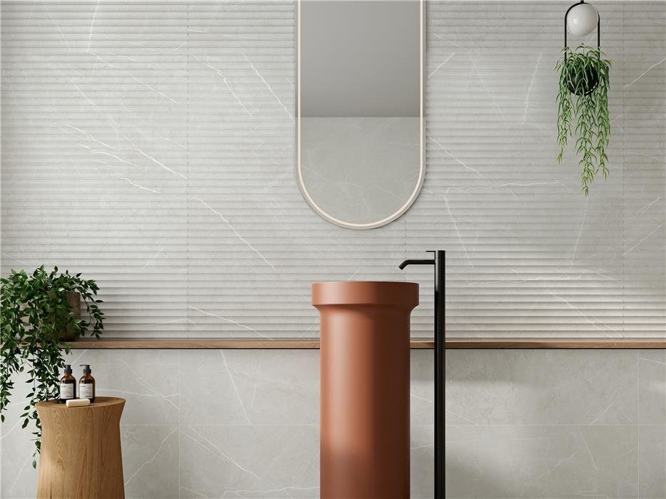 Aquesta col·lecció destaca per la seva gran versatilitat gràcies a la combinació de paviments de gres porcellànic esmaltat rectificat i revestiments coordinats. Disponible en espectaculars acabats Polit (amb una brillantor de mirall que maximitza la llum) i Satinat (de tacte suau i sedós), Alure d’Alaplana s’adapta a tot tipus d’espais. A més, es complementa amb les peces decoratives Alure Mosaic, dissenyades per revestir parets d’accent i crear volums geomètrics molt refinats als banys o cuines.
