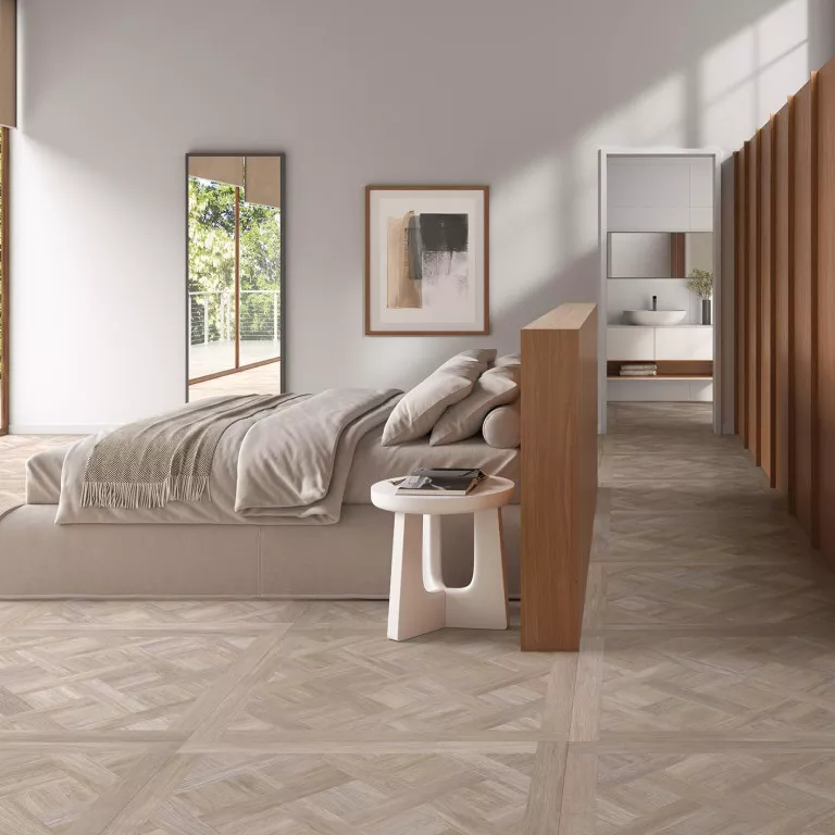 Alineada a la perfecció amb la tendència Japandi —que equilibra la funcionalitat escandinava amb l’estètica minimalista japonesa—, Intarsio està dissenyada per formar espectaculars rombes amb un patró diagonal. Aquest disseny geomètric aporta un gran dinamisme visual, sent ideal per a aquells que busquen transformar els seus espais en ambients acollidors, moderns i plens de personalitat. Ja sigui combinant el terratzo Wind Grey, el travertí clàssic o el vibrant Reggia Green amb la fusta, aquesta col·lecció és garantia de distinció.