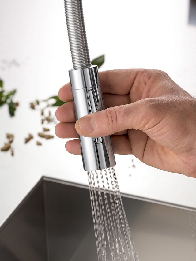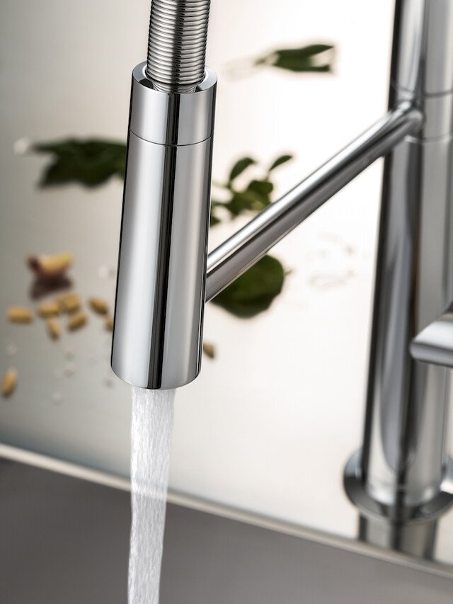 L’esperit intuïtiu de Levante ofereix comoditat i practicitat. L’ampli radi d’acció de la docheta extraïble i la facilitat per agafar-la gràcies al seu ancoratge magnètic permeten una llibertat de moviment total a l’aigüera.