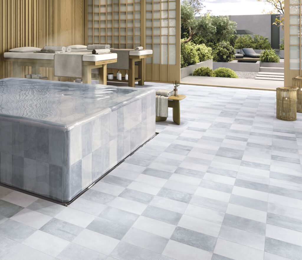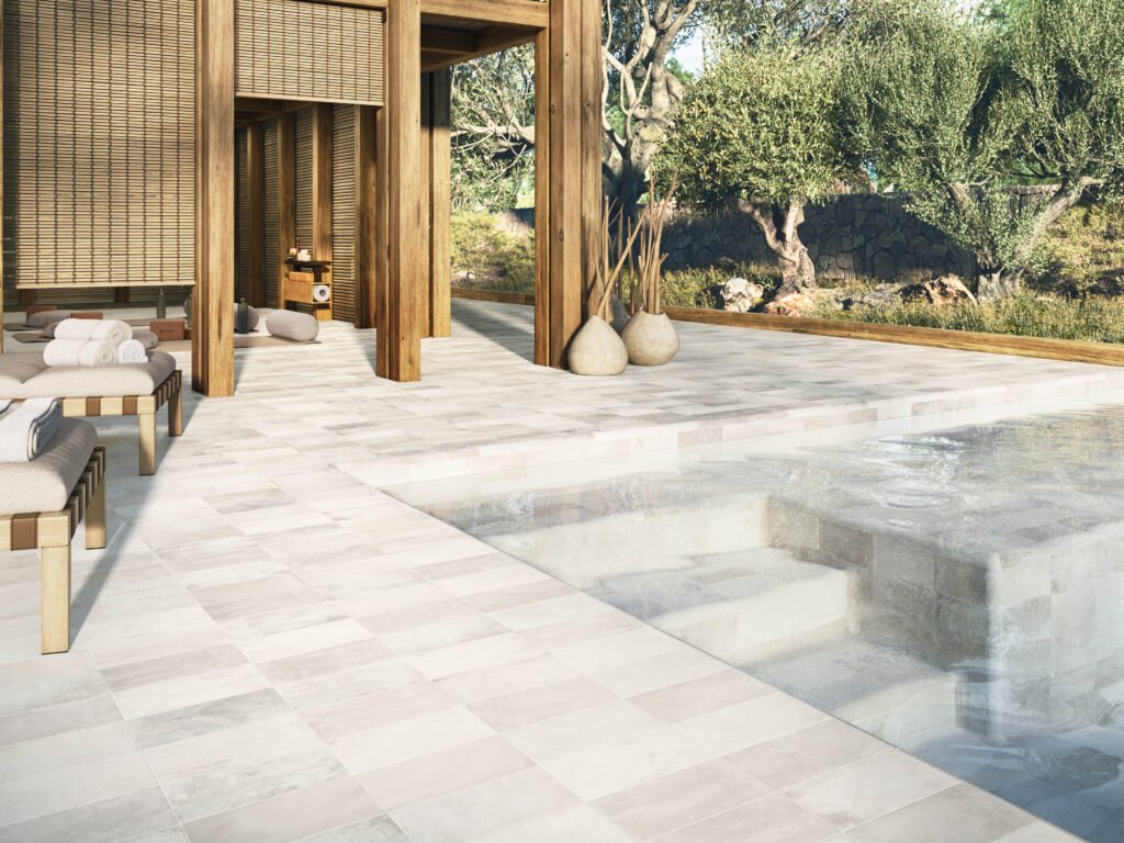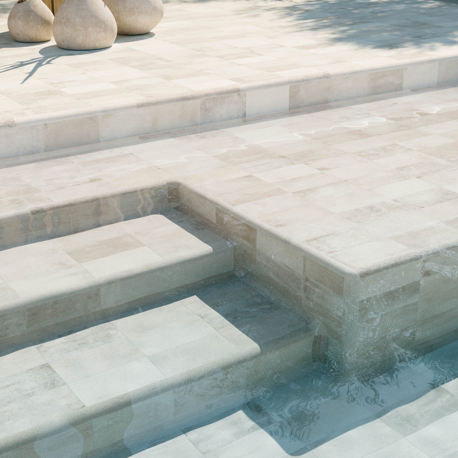 La sèrie Mizu de Cerámica Mayor és una col·lecció de gres extrusionat que neix de la recerca de la calma i l’equilibri, inspirant-se en l’estètica zen i el disseny japonès contemporani. Aquesta proposta destaca per una gràfica extremadament suau i una paleta de tons neutres que evoquen la puresa dels materials naturals banyats per la llum. És la solució ideal per a projectes d’arquitectura que busquen crear espais de relaxació total, on la continuïtat visual entre la terrassa, la coronació i l’interior de la piscina genera una atmosfera d’harmonia absoluta.