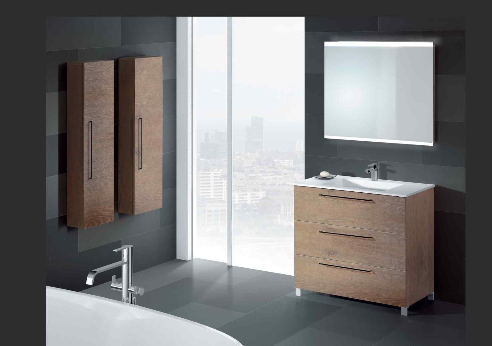 La Sèrie Ambient Three de VidreBany eleva el concepte de funcionalitat a la màxima potència. Dissenyada per a espais on l’emmagatzematge és una prioritat, aquesta sèrie manté l’estètica depurada i arquitectònica que defineix la col·lecció Ambient, però amb una alçada de mòdul de 86 cm que permet aprofitar cada centímetre fins al terra (o en versió suspesa de gran fons). És el moble ideal per a qui vol un bany organitzat sense renunciar a les darreres tendències en acabats.