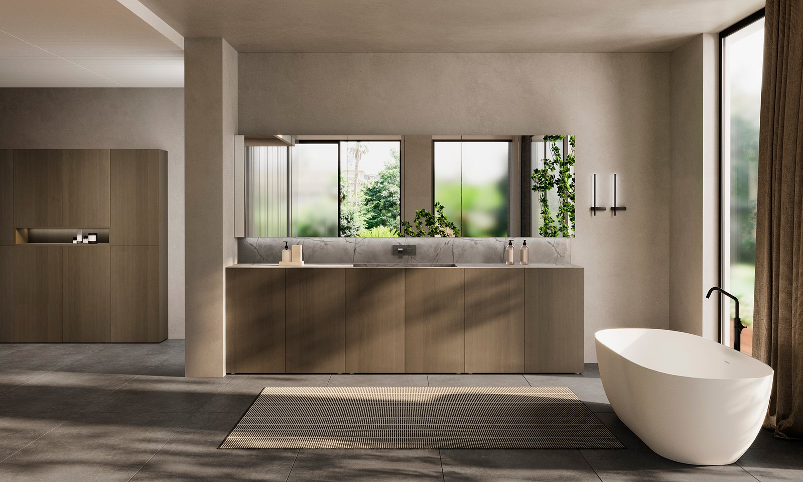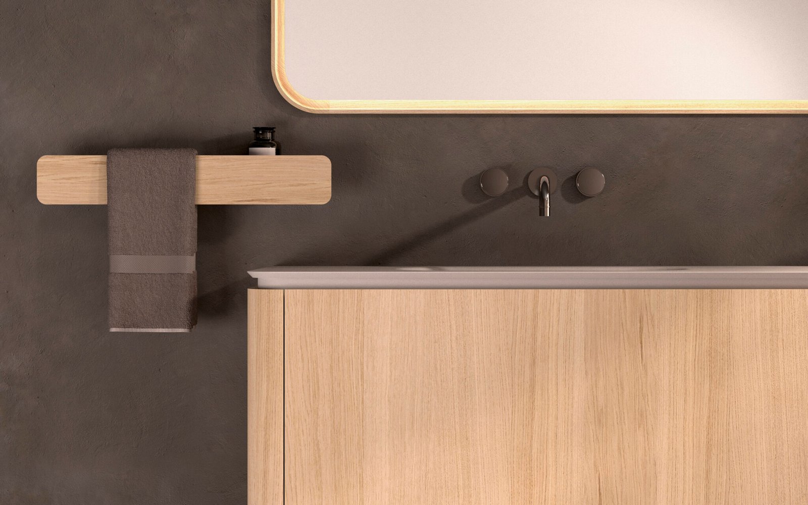 La col·lecció Randa Miter, dissenyada i fabricada per Mapini a les Illes Balears, porta la perfecció dels detalls al següent nivell. Aquesta sèrie destaca per la seva encimera a inglet, una solució tècnica que minimitza la unió visual amb el moble i elimina la percepció del gruix de l’encimera, oferint una sensació de continuïtat i un acabat de luxe absolut. A més, presenta una veta de fusta en posició horitzontal contínua que travessa harmònicament tot el frontal.