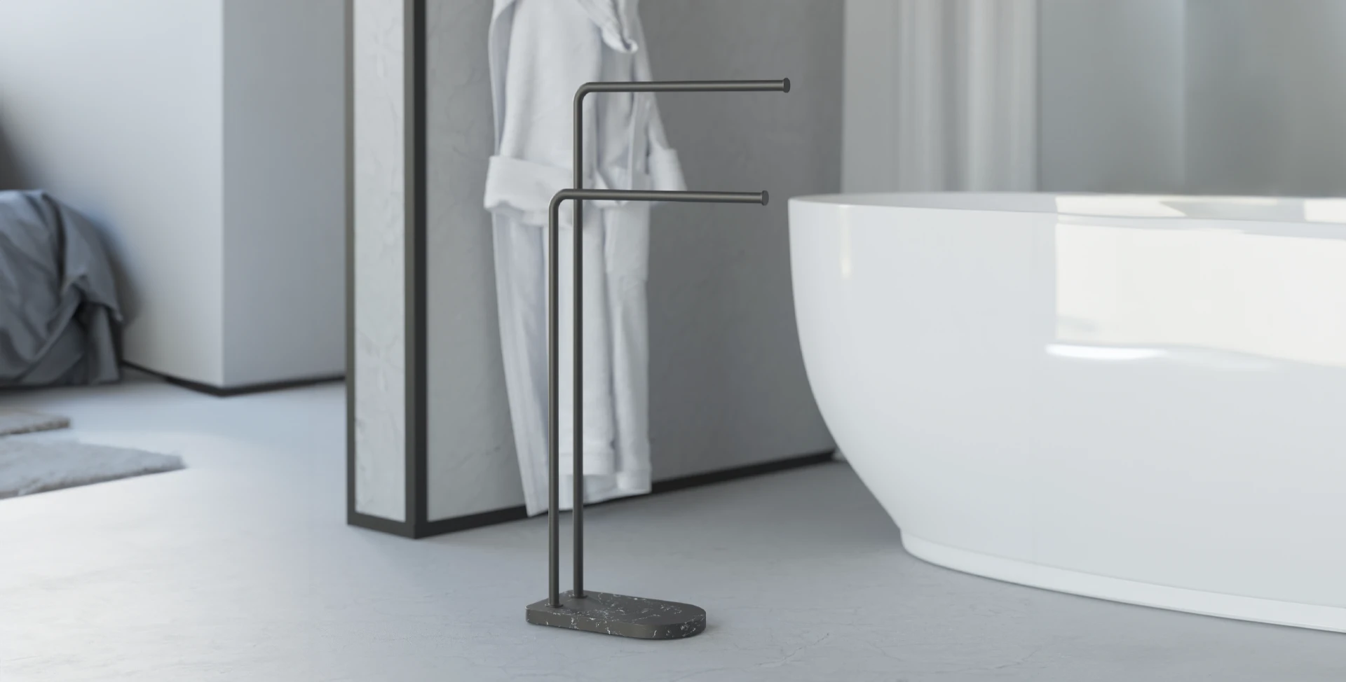 La col·lecció Nomad de Sonia representa la sofisticació portada als accessoris de bany exempts. Dissenyada per a projectes que busquen un toc distintiu sense foradar les parets, aquesta singular i elegant línia d’accessoris de terra basa la seva bellesa en el contrast i la noblesa dels seus materials: estilitzades estructures metàl·liques combinades amb pesants i majestuoses bases de pedra natural compacta.