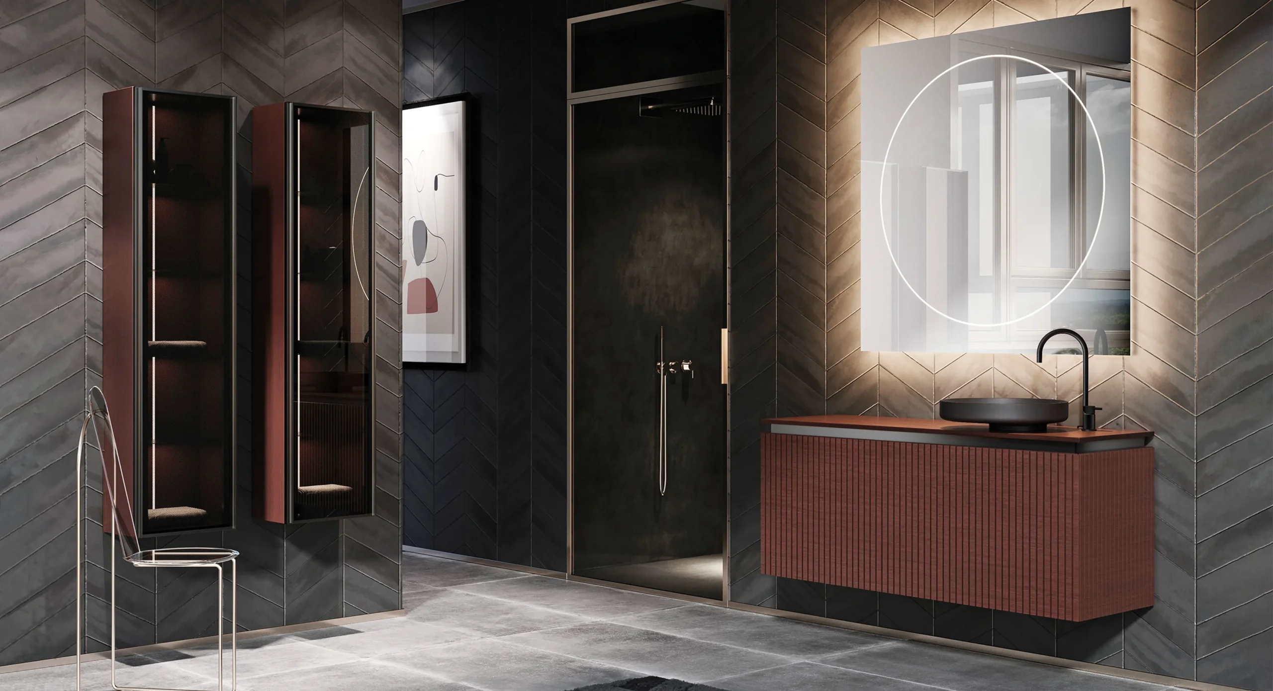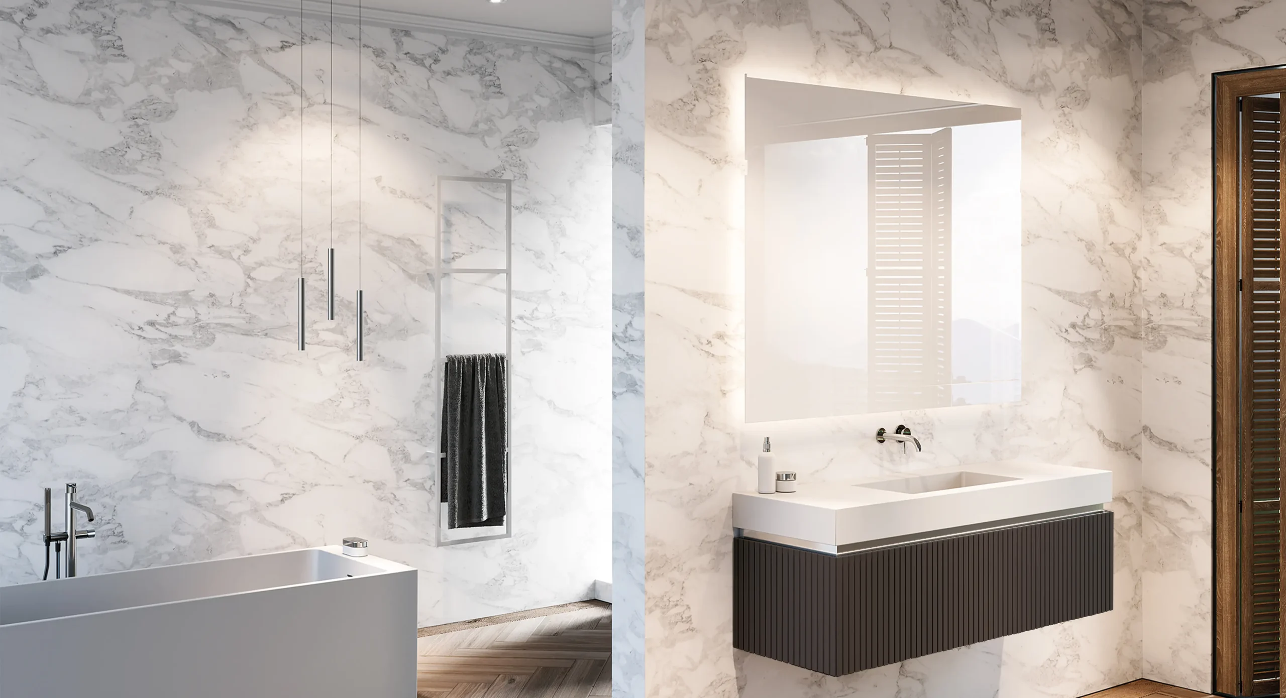 Aconsegueix un bany d’estètica Boutique amb la col·lecció Olympia. Aquest moble ha estat dissenyat per elevar el teu refugi personal a la categoria d’spa privat. Les seves línies netes i el seu rigor geomètric s’integren meravellosament en projectes que busquen la màxima puresa visual. Destaca especialment combinat amb revestiments ceràmics de gran format, aportant un toc orgànic que harmonitza tot l’espai.