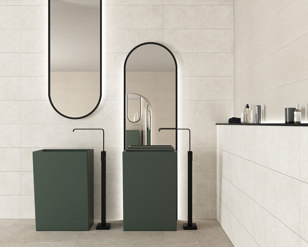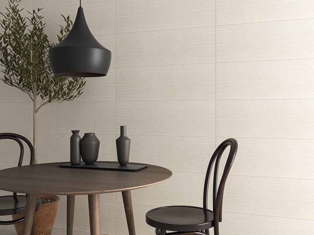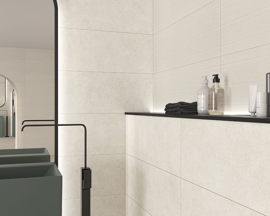 La col·lecció Arenisca d’Ecoceramic captura la sobrietat i la riquesa tàctil de la pedra sorrenca original. Dissenyada per a espais que busquen una connexió directa amb la natura, aquesta sèrie ofereix una estètica serena i equilibrada, ideal per a projectes d’interiorisme a Badalona que aposten pel minimalisme càlid i la continuïtat visual entre estances.