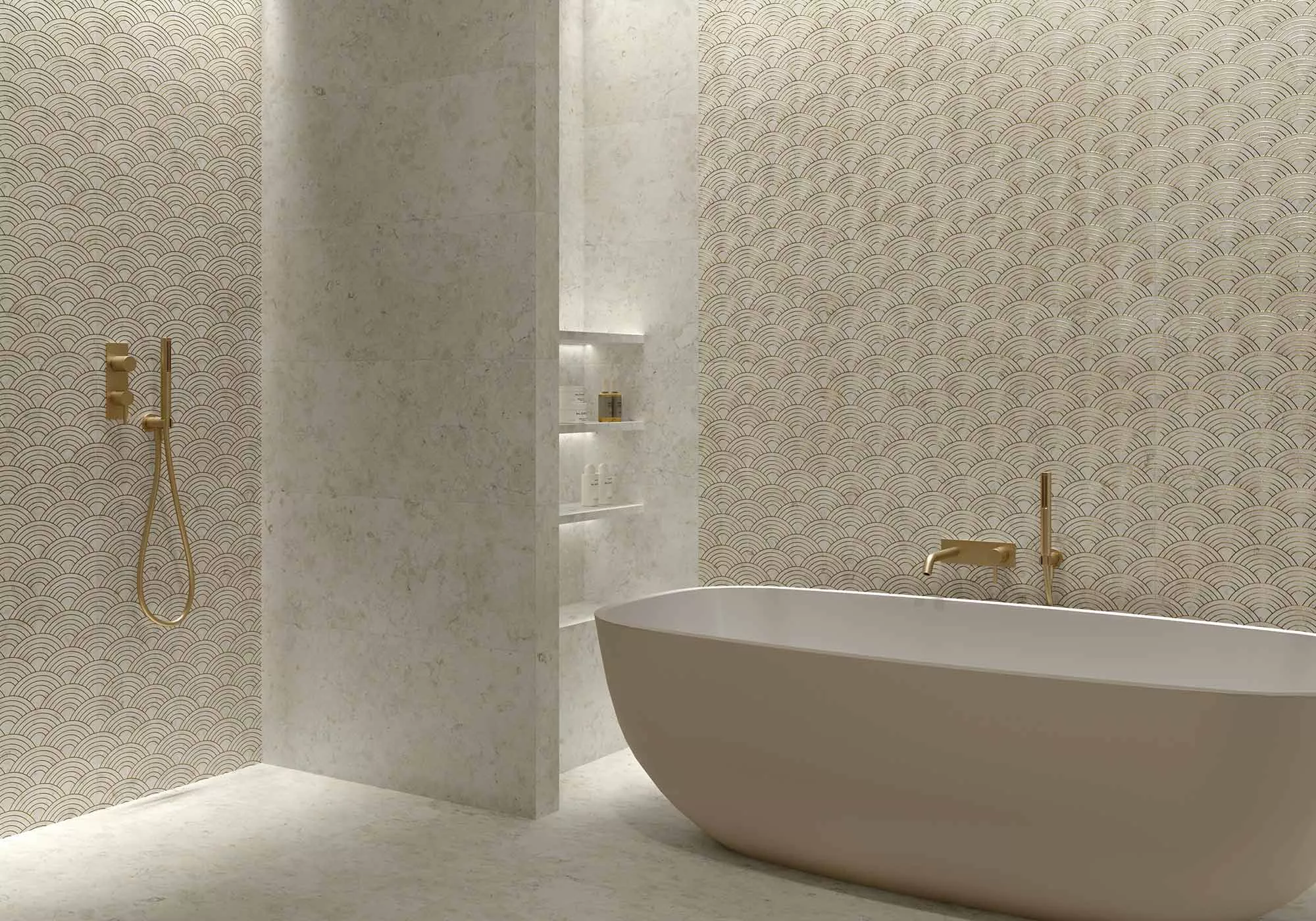 Aquesta col·lecció destaca per la seva increïble versatilitat tècnica i estètica, oferint solucions integrals per a projectes arquitectònics d’alt nivell. Combina peces de gres porcellànic rectificat per a paviments i revestiments —amb opcions en acabat Natural d’aspecte mat i Rigato, que afegeix una nova dimensió tàctil mitjançant un delicat relleu— amb exclusives peces de ceràmica de pasta blanca. Aquestes últimes, presentades en format 30×100 cm, introdueixen captivadors patrons de semicercles entrellaçats (disseny Chained), perfectes per crear accents visuals únics que s’adapten des de l’estil més minimalista fins al més clàssic.