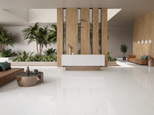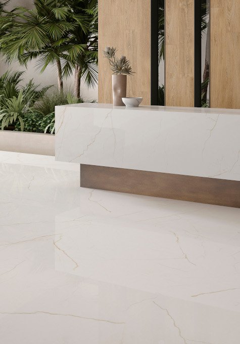 Disponible en acabats polit i satinat, aquesta col·lecció és ideal per a projectes que busquen un luxe lluminós i serè, permetent una continuïtat visual impecable gràcies als seus formats de grans dimensions.