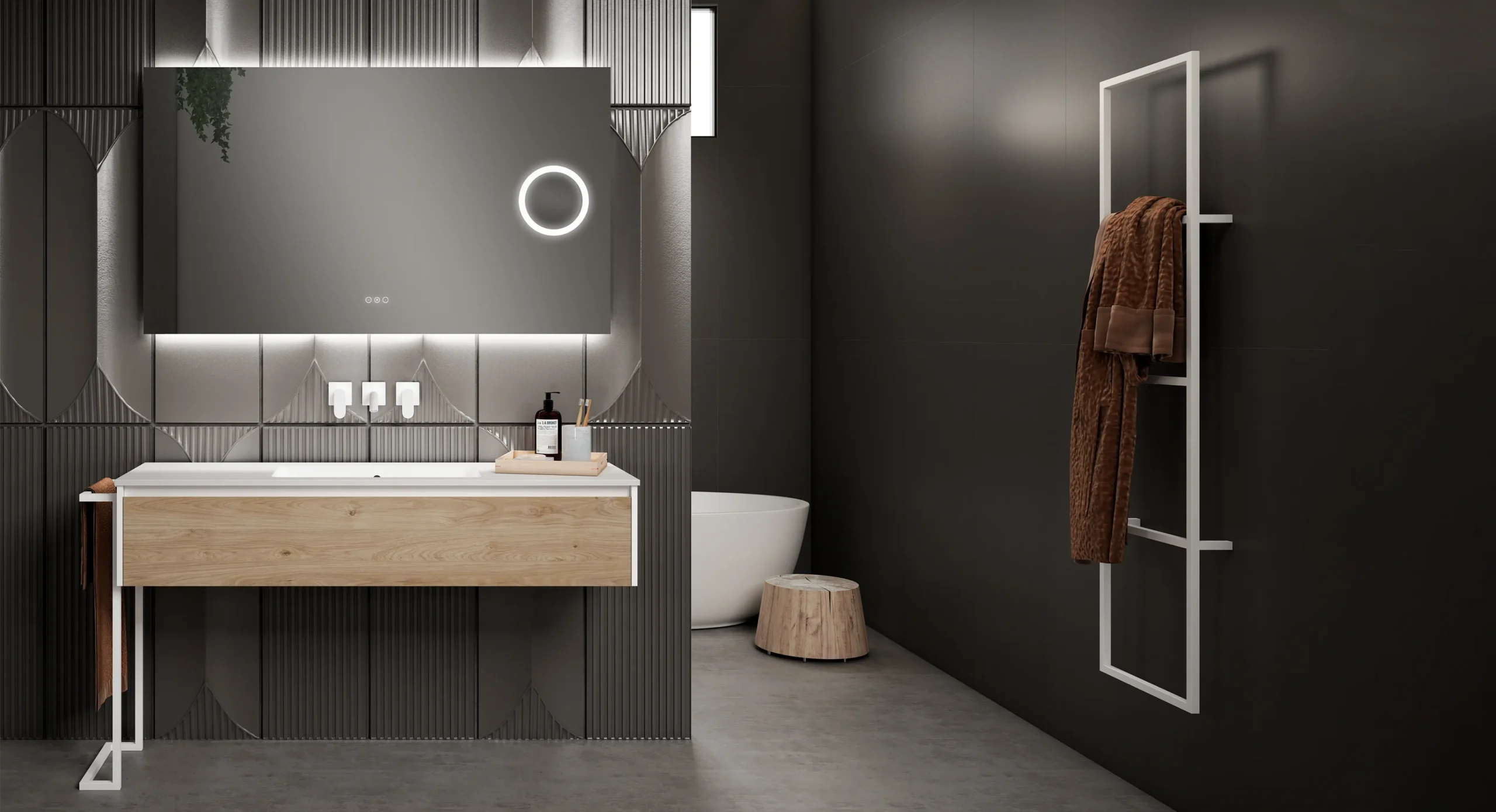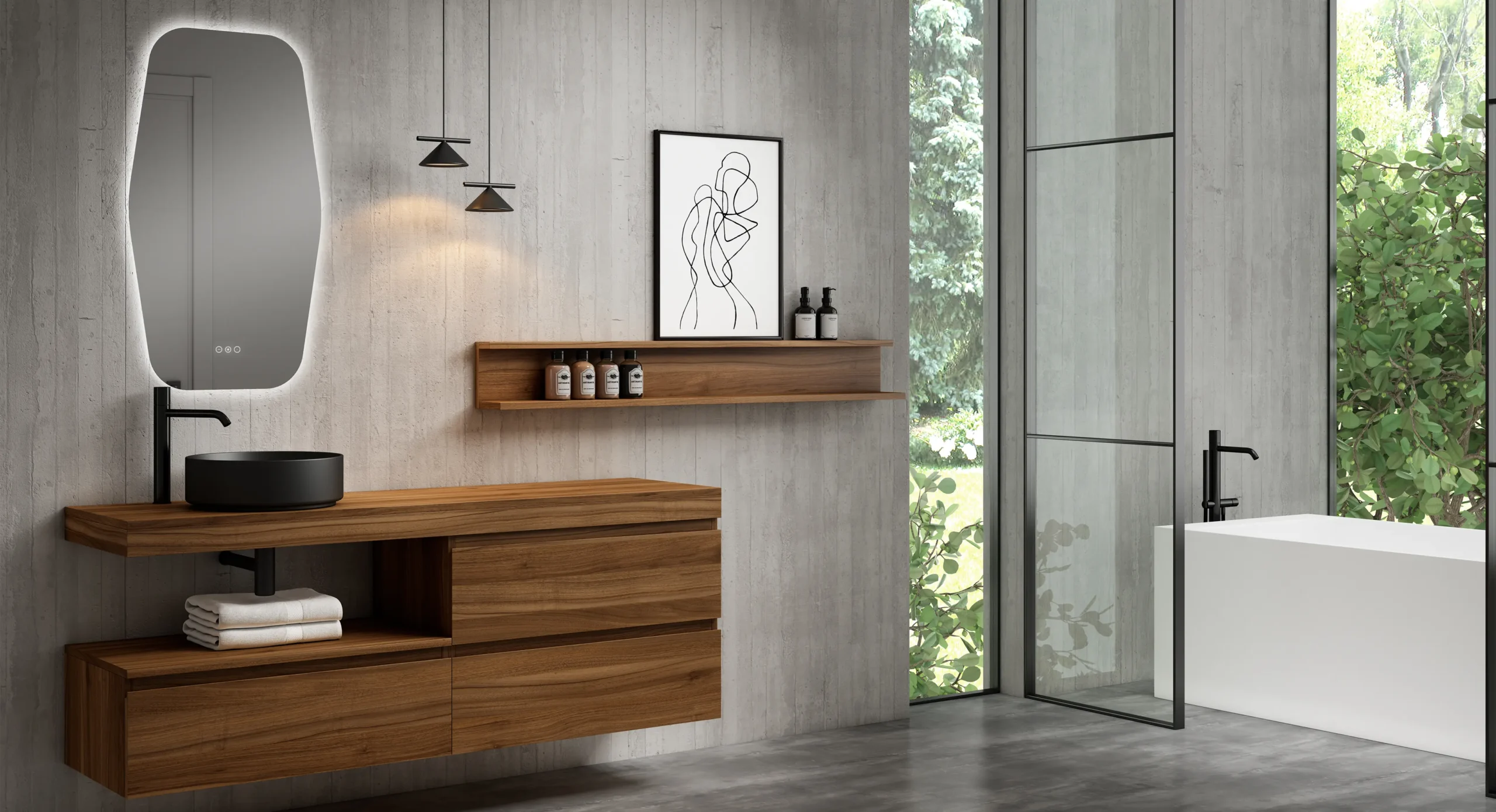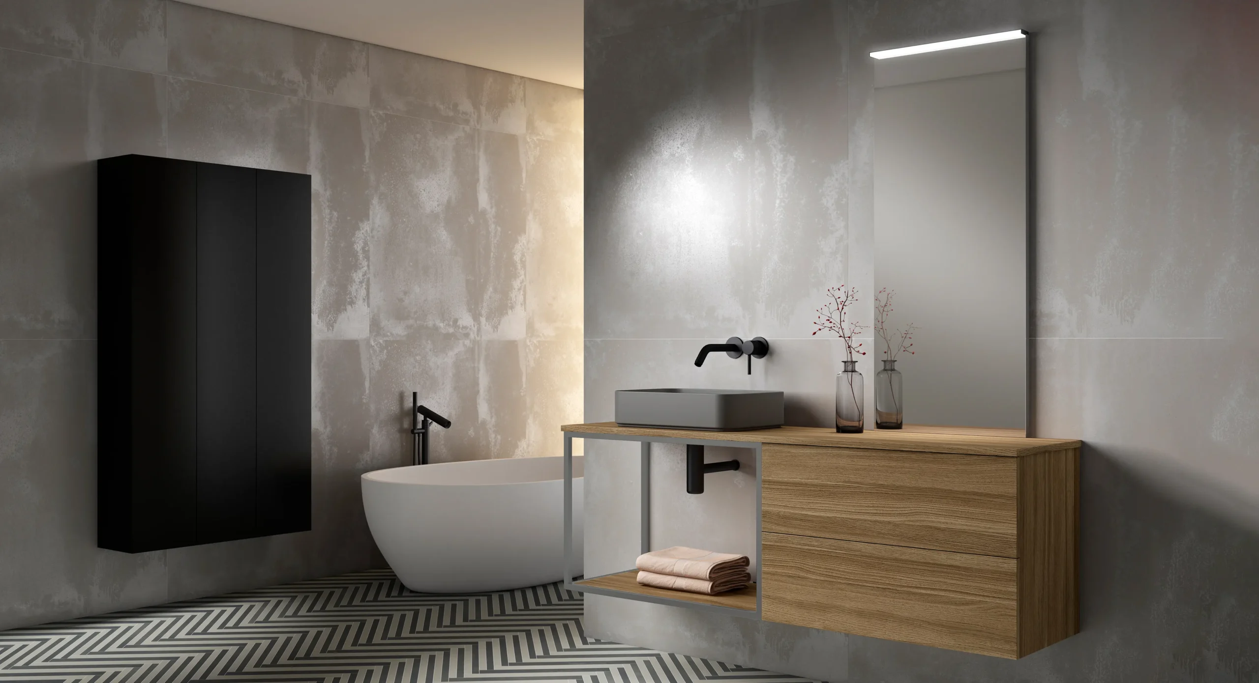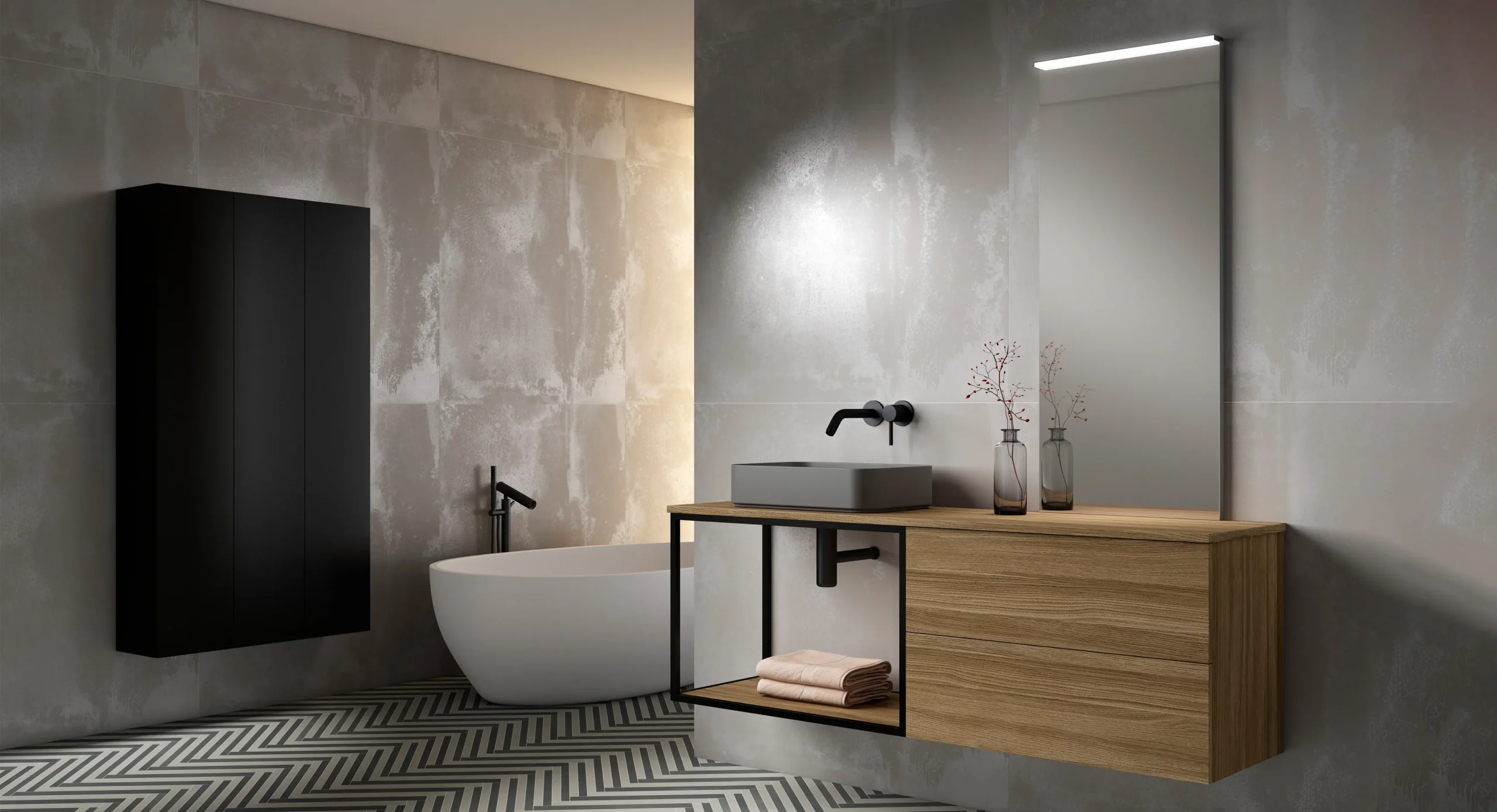 Aconsegueix un bany d’estètica Boutique amb la col·lecció Play. Aquest moble ha estat dissenyat per elevar el teu refugi personal a la categoria d’spa privat. Les seves línies netes i el seu rigor geomètric s’integren meravellosament en projectes que busquen la màxima puresa visual. Destaca especialment combinat amb revestiments ceràmics de gran format, aportant un toc orgànic que harmonitza tot l’espai.