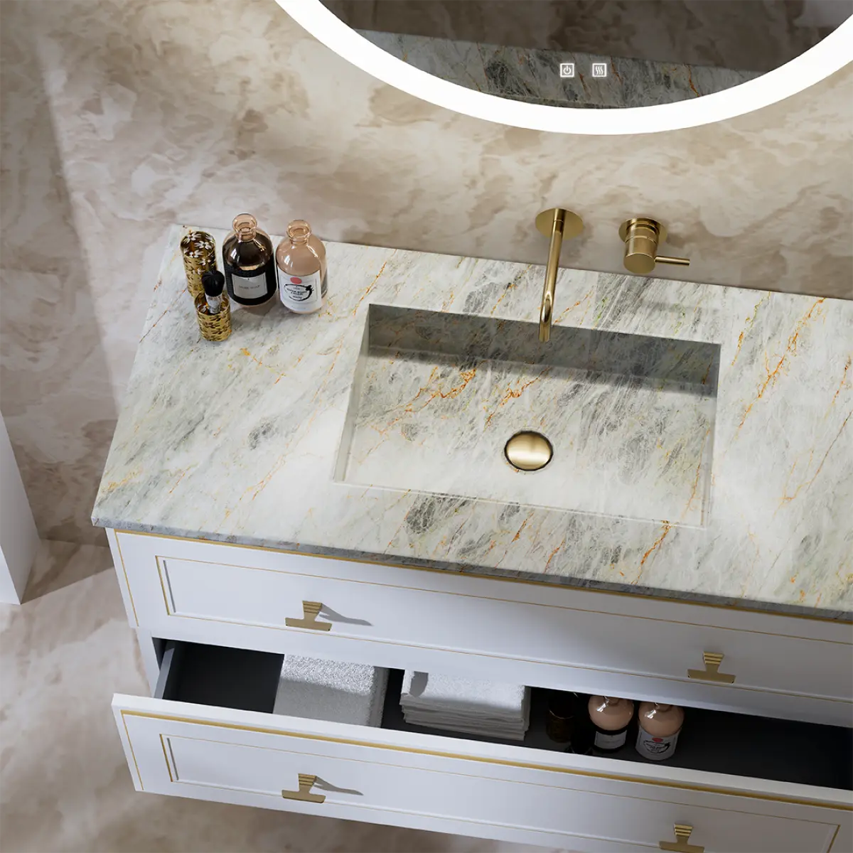 Aconsegueix un bany d’estètica Boutique amb la col·lecció Queen. Aquest moble ha estat dissenyat per elevar el teu refugi personal a la categoria d’spa privat. Les seves línies netes i el seu rigor geomètric s’integren meravellosament en projectes que busquen la màxima puresa visual. Destaca especialment combinat amb revestiments ceràmics de gran format, aportant un toc orgànic que harmonitza tot l’espai.