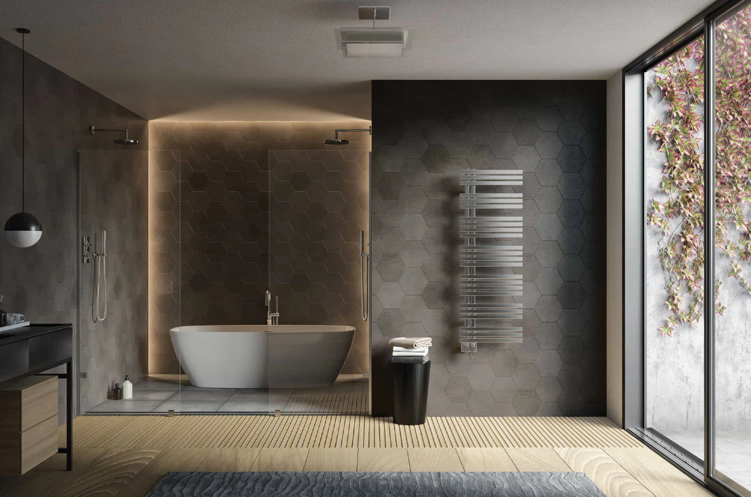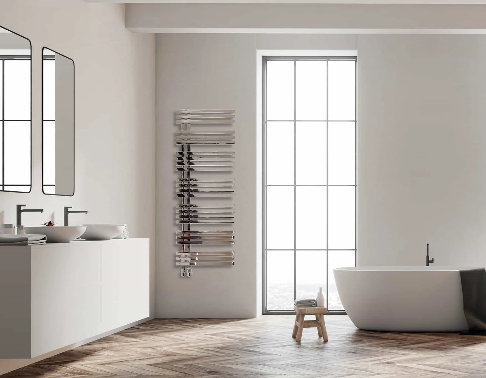 Estructura esglaonada que aporta dinamisme i un ample espai asimètric per situar i escalfar les tovalloles de tota la família de manera eficient.