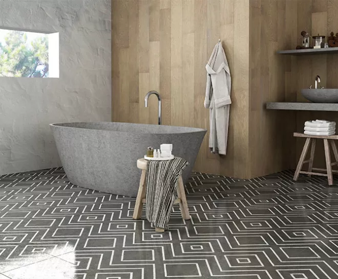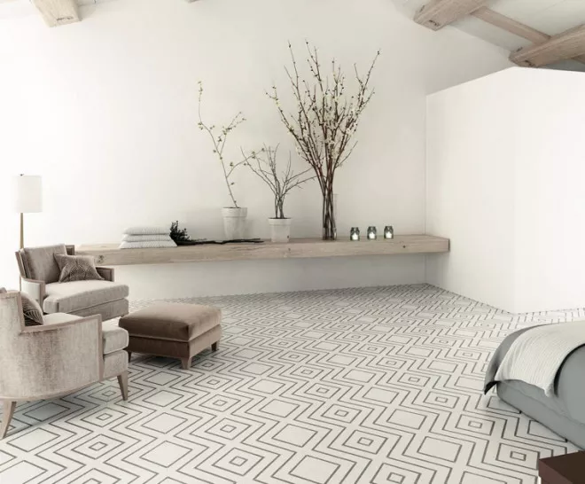 El modelo Encaustic pertenece a la colección Encaustic 2.0 de Apavisa, una serie que reinterpreta con maestría la belleza atemporal de las baldosas hidráulicas clásicas. Este diseño decorativo destaca por sus patrones ornamentales sobre un fondo claro (White Decor), aportando un toque vintage muy elegante y lleno de personalidad a cualquier proyecto de interiorismo.