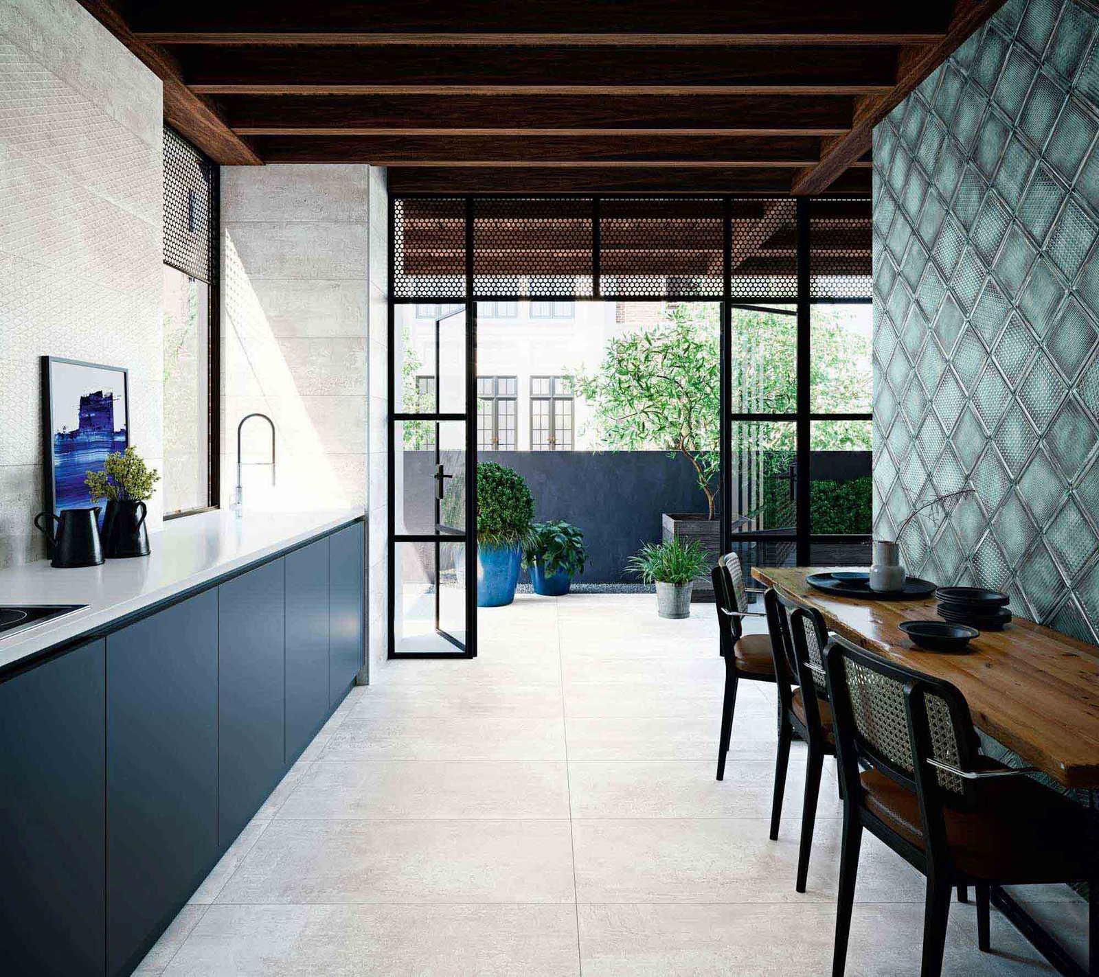 Gràcies a la integració de tecnologies d’avantguarda com 3d InkTech i ChromPlus, la sèrie aconsegueix una riquesa de matisos metàl·lics excepcional. El seu catàleg és un dels més complets, oferint des de paviments porcellànics de gran format fins a revestiments de pasta blanca amb peces decoratives úniques com el Cosmos Decor o el model Ornato. A més, la variant Outdoor 2CM permet portar aquesta estètica urbana a terrasses i exteriors amb totals garanties de seguretat