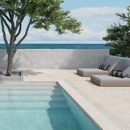 La sèrie Salem de Cerámica Mayor és una col·lecció de gres extrusionat que captura la bellesa sòbria i la textura delicada de la pedra natural. Aquesta proposta destaca per una gràfica suau i una paleta de colors neutres que aporten una sensació de calma i amplitud a qualsevol espai exterior. És la solució ideal per a projectes d’arquitectura contemporània que busquen un estil minimalista amb un toc de calidesa mineral, garantint una integració visual perfecta entre la terrassa i el vas de la piscina.