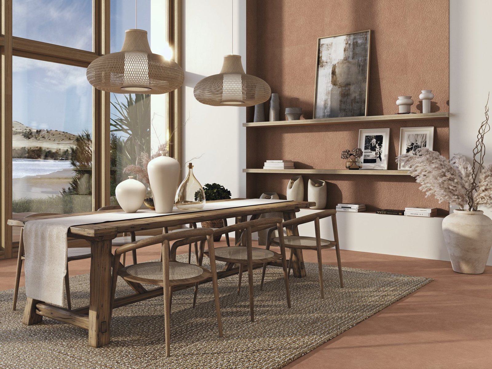 Ús Principal: Revestiments de parets de locals moderns d’inspiració terra i ambients oberts, Terres amples que cerquen escalfor humà.