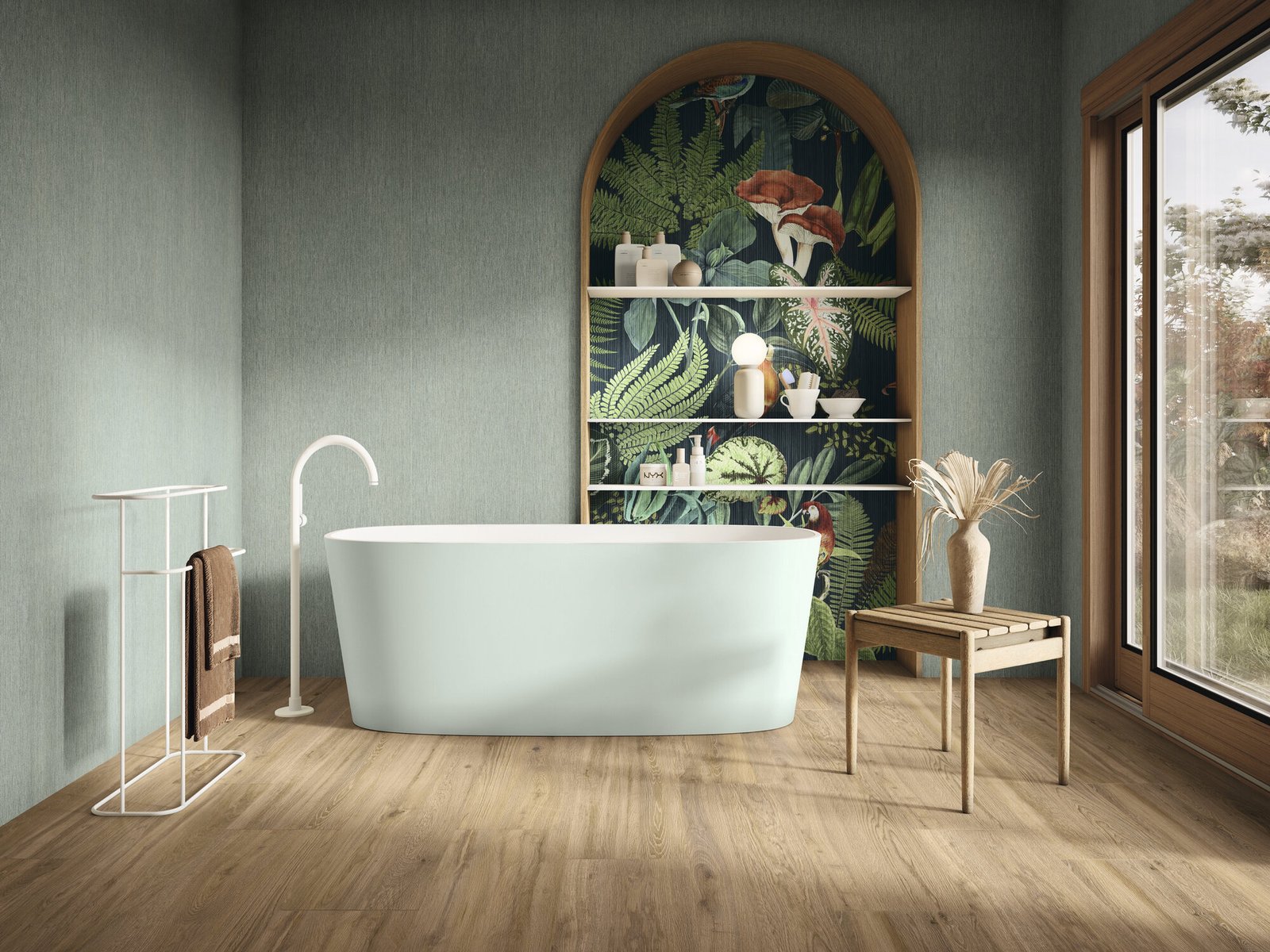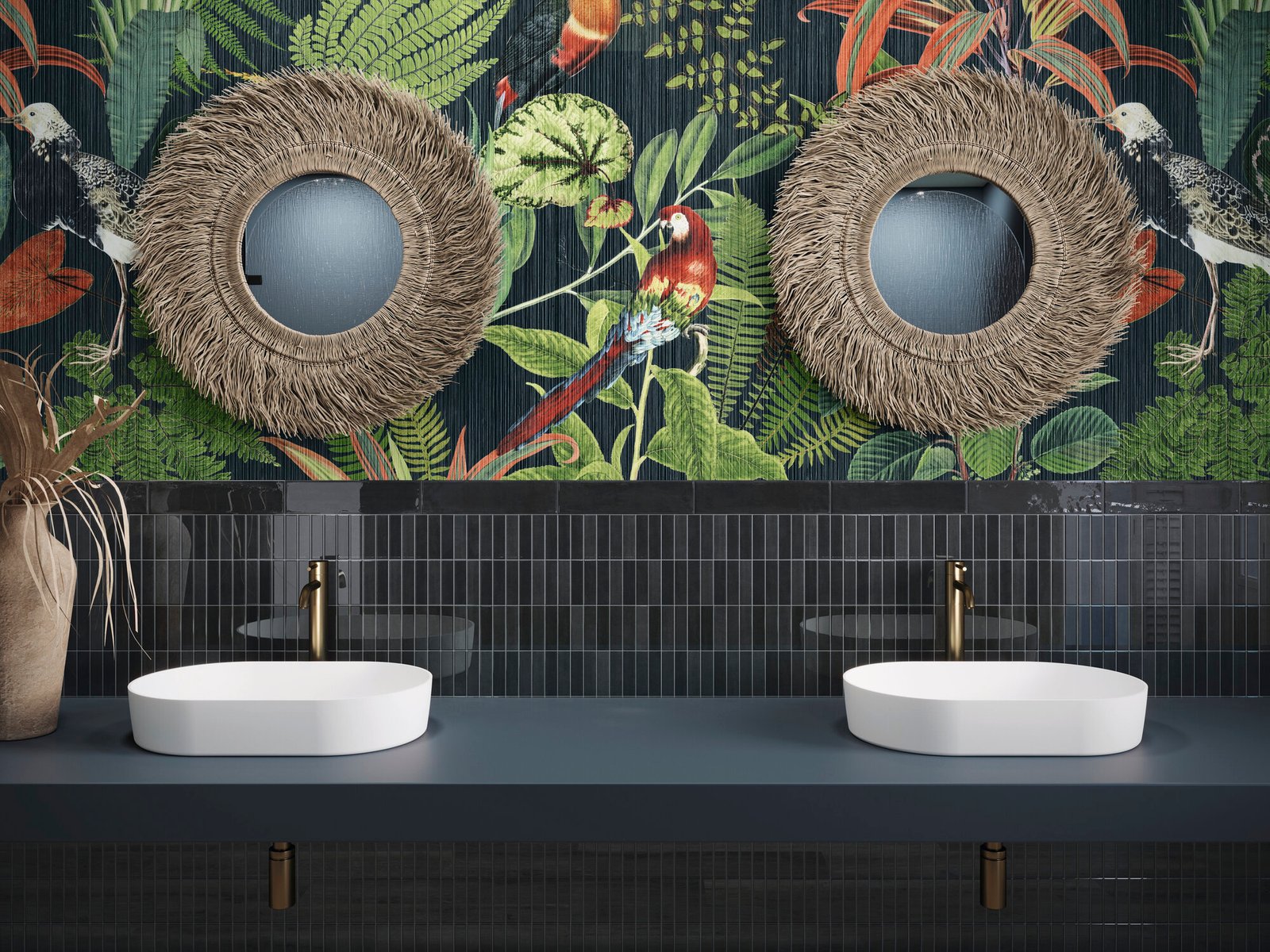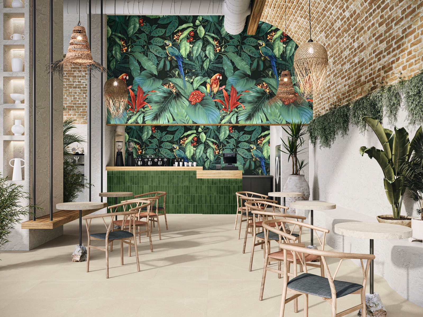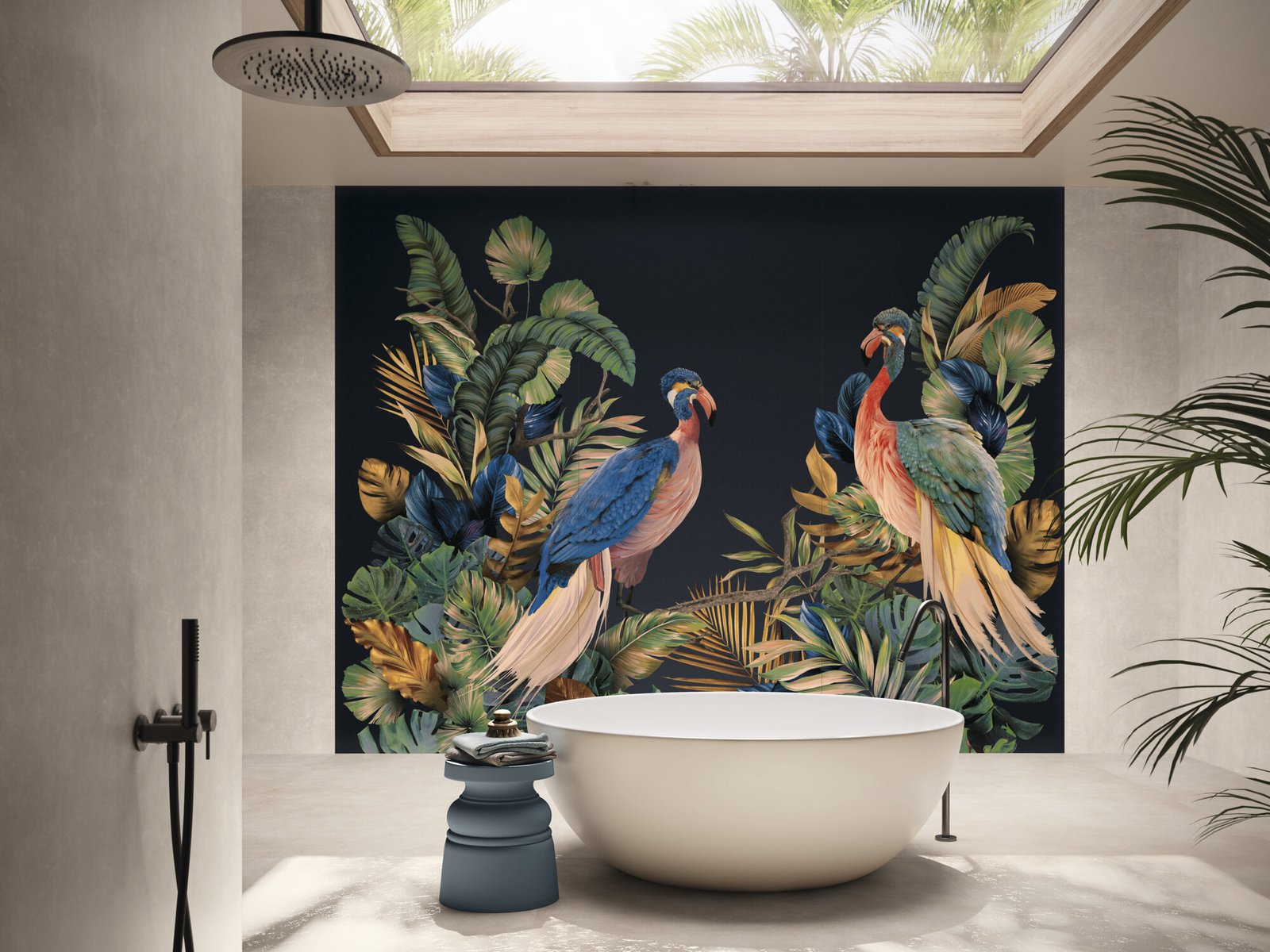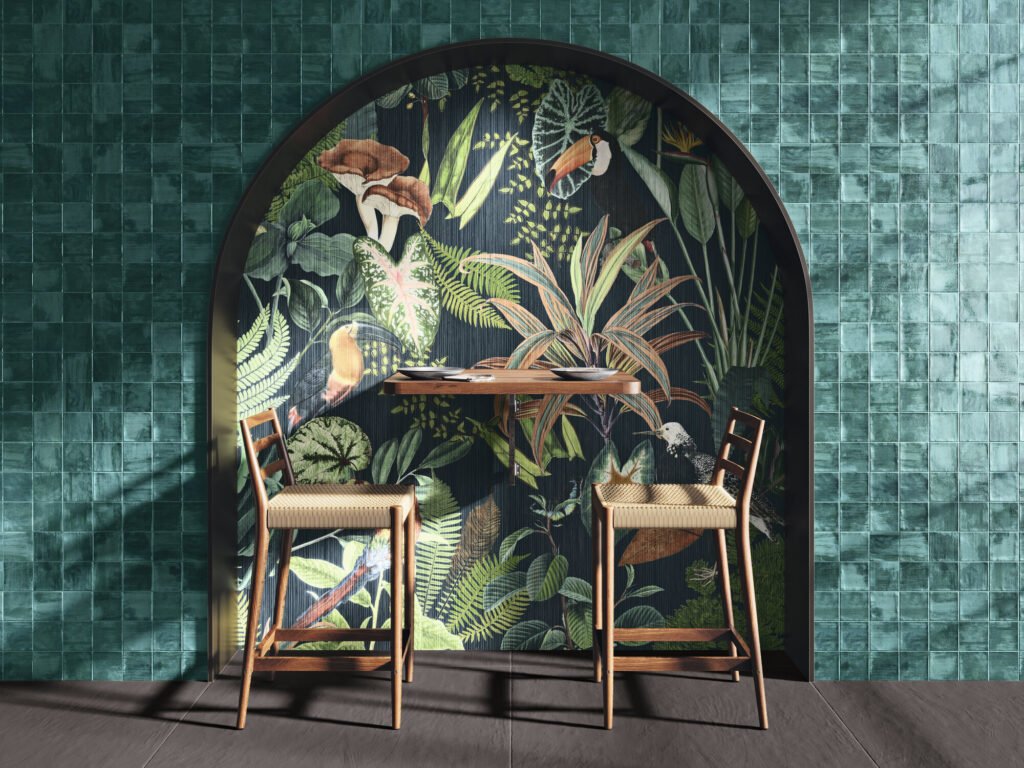 L’estrella indiscutible del format gegantí i lleuger (XLINING), Atelier, fusiona la tècnica altíssima de la producció ceràmica amb el detallisme creatiu d’un fresc o mural de pintors botànics o abstractes. Amb models espectaculars (‘Samoa’, ‘Maui’, ‘Visaya’), reprodueix la selva acolorida, les branques i motius tropicals d’aquarel·les riquíssimes de vida, lliure de les fallades del *paper* fràgil real davant humitat extrema i esquitxades continuades.