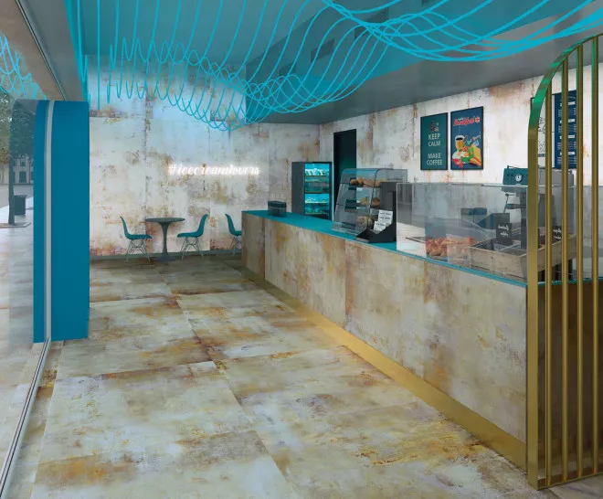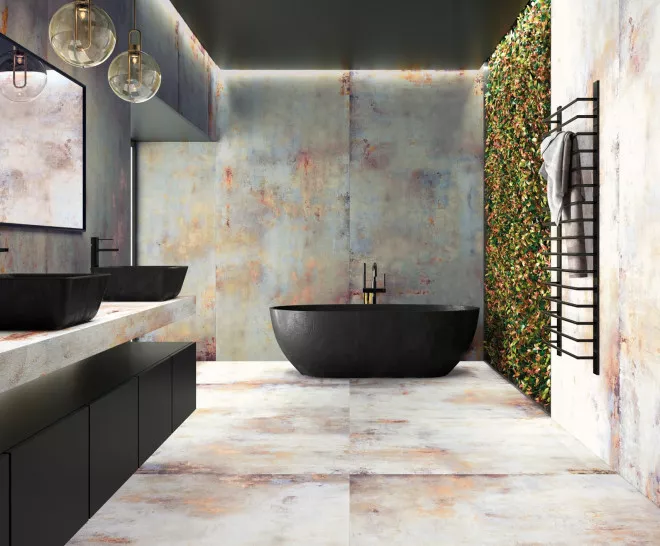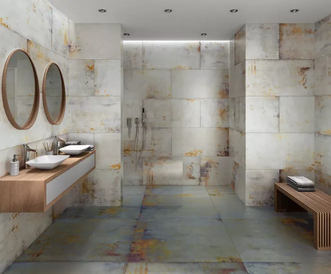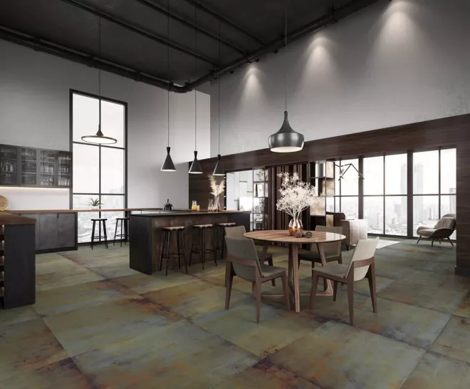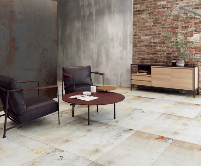 Força matèrica i avantguarda. Lamiere reinterpreta la presència del metall sotmès al pas del temps. Una proposta excel·lent per a espais audaços on l’arquitectura industrial pren el protagonisme.