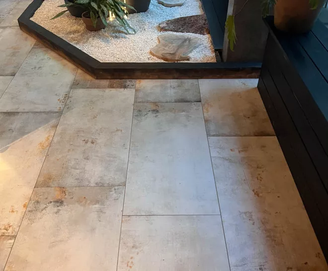 • Mateix terra interior i exterior (In & Out): Aquesta és la gran tendència. Busca les col·leccions d'Efecte Pedra, Ciment o Fusta amb versió antilliscant (C3 o Grip) per unificar espais sense barreres visuals.