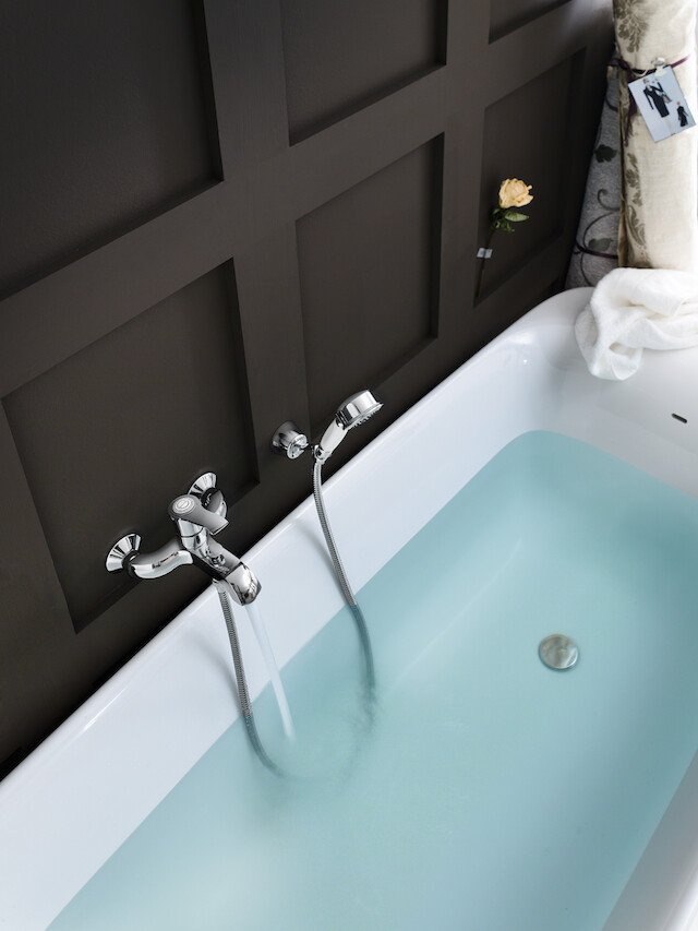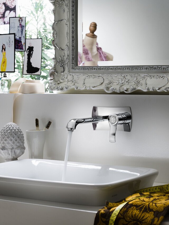 • Zona Lavabo i Bidet: Bateries tradicionals de 3 forats amb canella alta, monocomandaments d’estil clàssic i solucions murals elegants.