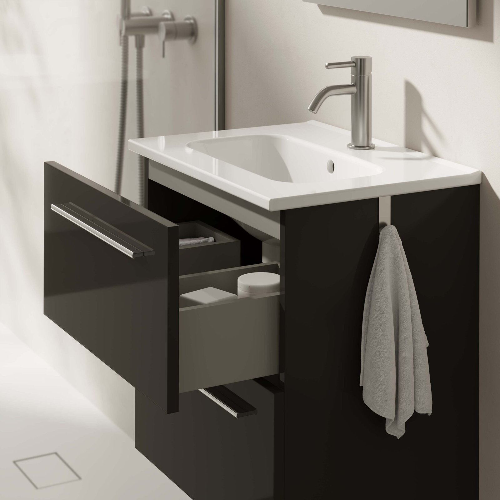 La col·lecció Street de Royo Group és la definició perfecta de dinamisme i lleugeresa visual per a la cambra de bany. Pensada per a espais contemporanis on la practicitat i l’estètica han d’anar de la mà, aquesta sèrie destaca pel seu disseny fresc, atractiu i altament versàtil. El seu caràcter es defineix per l’elegància d’un tirador metàl·lic visible, que aporta un toc industrial i estilitzat, garantint alhora una durabilitat i ergonomia excepcionals per a l’ús diari.