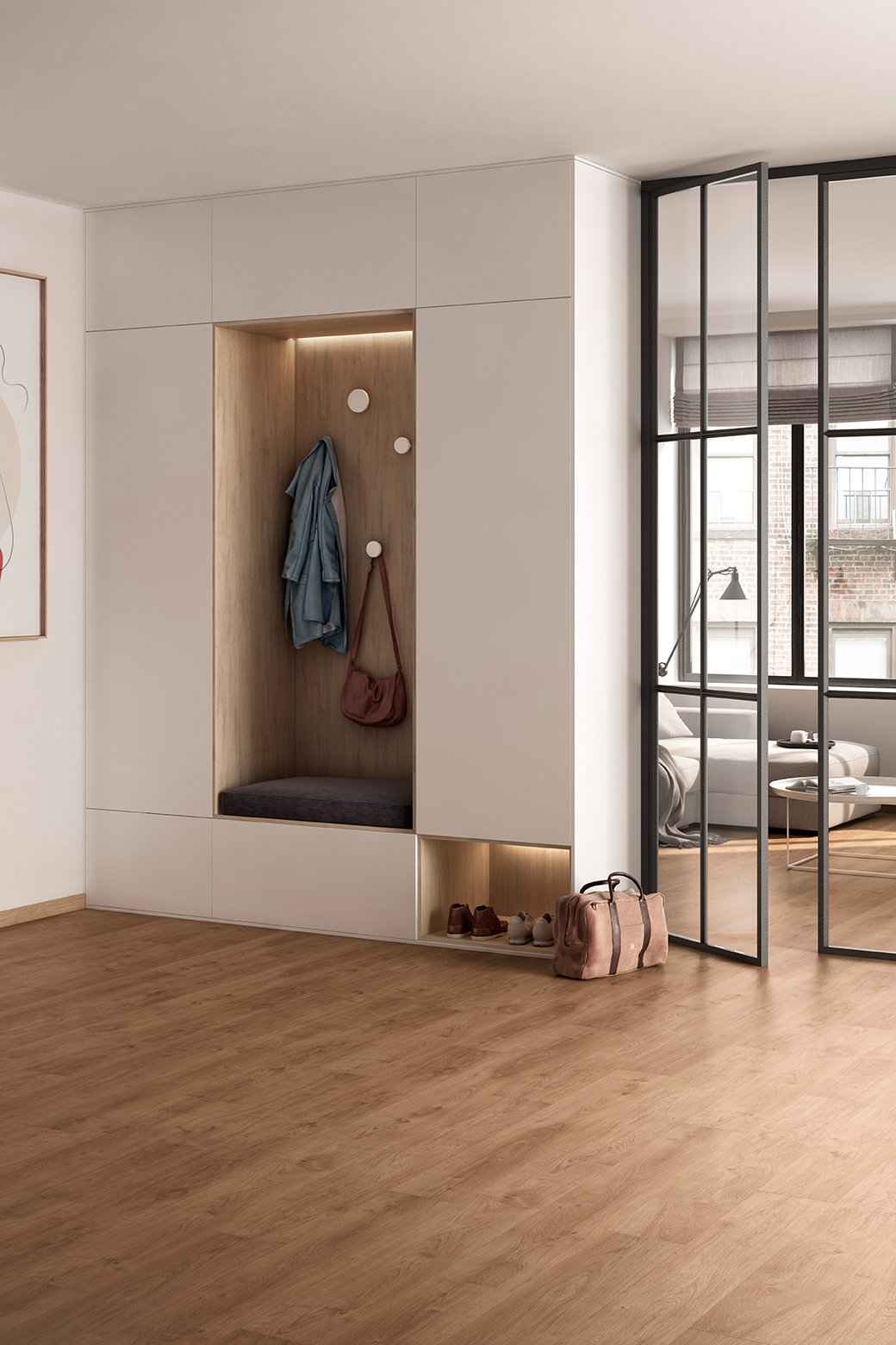 Aquest terra laminat compta amb una elevada resistència a l’abrasió AC5 i classificació Classe 33, sent perfectament apte per a un ús domèstic i comercial intens. El seu gran secret resideix en la tecnologia Hydroprotect: un sistema de clic d’alta precisió, tauler HDF de gran estabilitat dimensional i, sobretot, el segellat dels quatre cantells amb parafina per repel·lir la humitat. Gràcies a això, utilitzant el segellador de juntes i la silicona perimetral recomanada, és un terra completament apte per a banys i cuines. A més, permet instal·lacions contínues de fins a 81 m² (9 x 9 m) sense necessitat de perfils de transició a les portes.