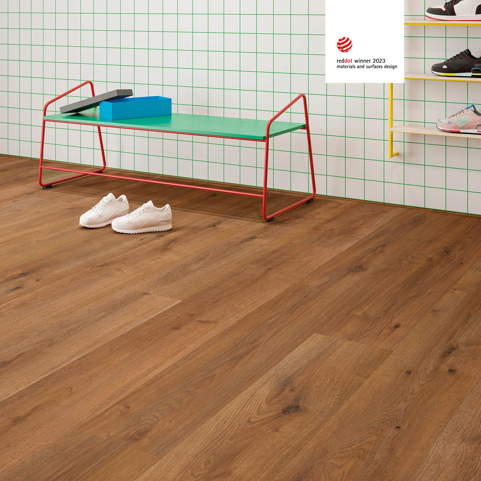 Finfloor XL no només destaca per la seva bellesa, sinó per la seva duresa extrema. Amb una classificació d’ús Classe 33 i resistència a l’abrasió AC6, està preparat per suportar el trànsit comercial i domèstic més intens. A més, la seva estabilitat permet realitzar instal·lacions contínues de fins a 144 m² (12 m x 12 m) sense necessitat d’utilitzar antiestètics perfils d’expansió als passos de porta. Aquest terra també és antiestàtic, apte per a terra radiant/refrescant i compta amb les màximes certificacions ecològiques i de salut (Ecolabel, CARB2 i FSC).