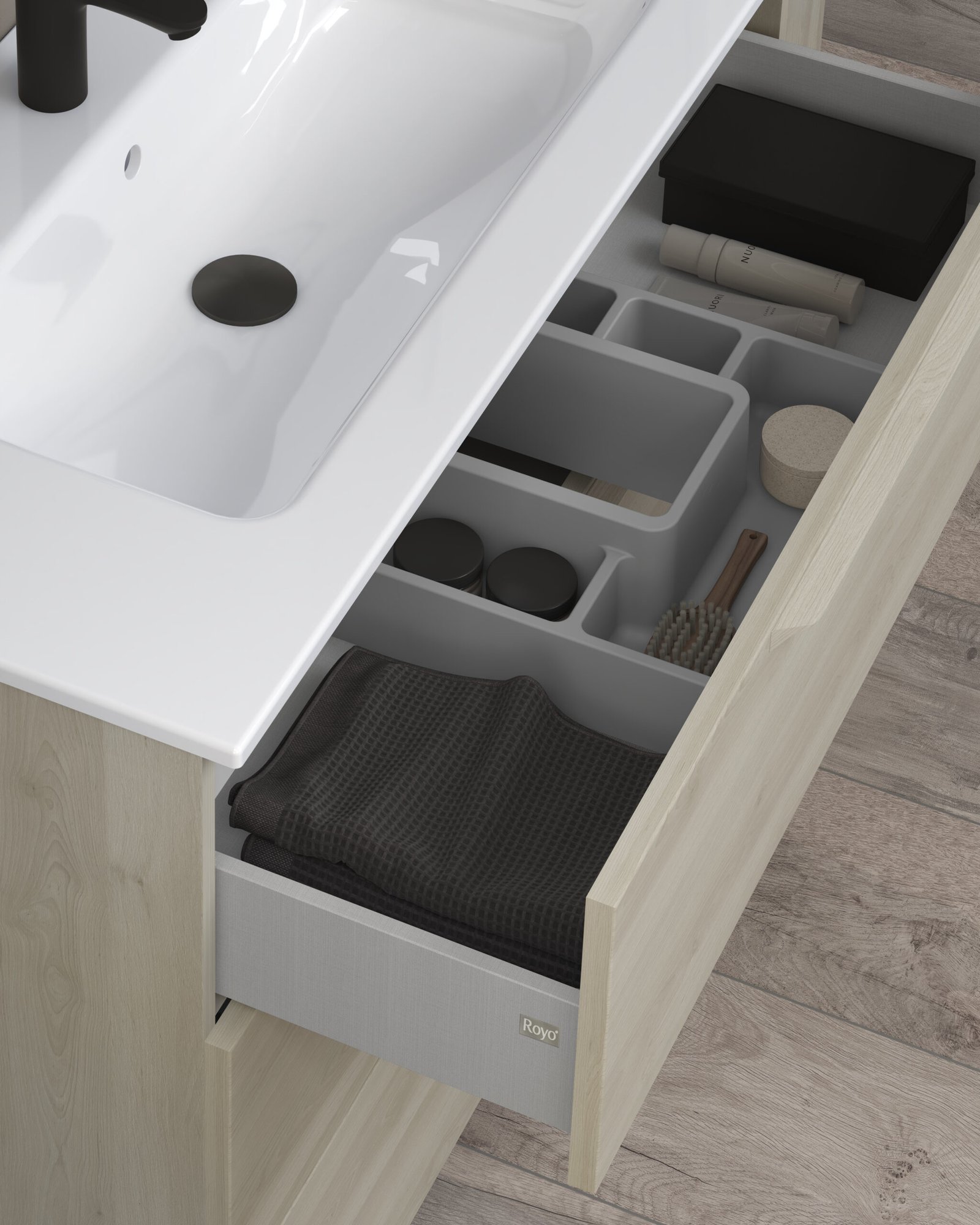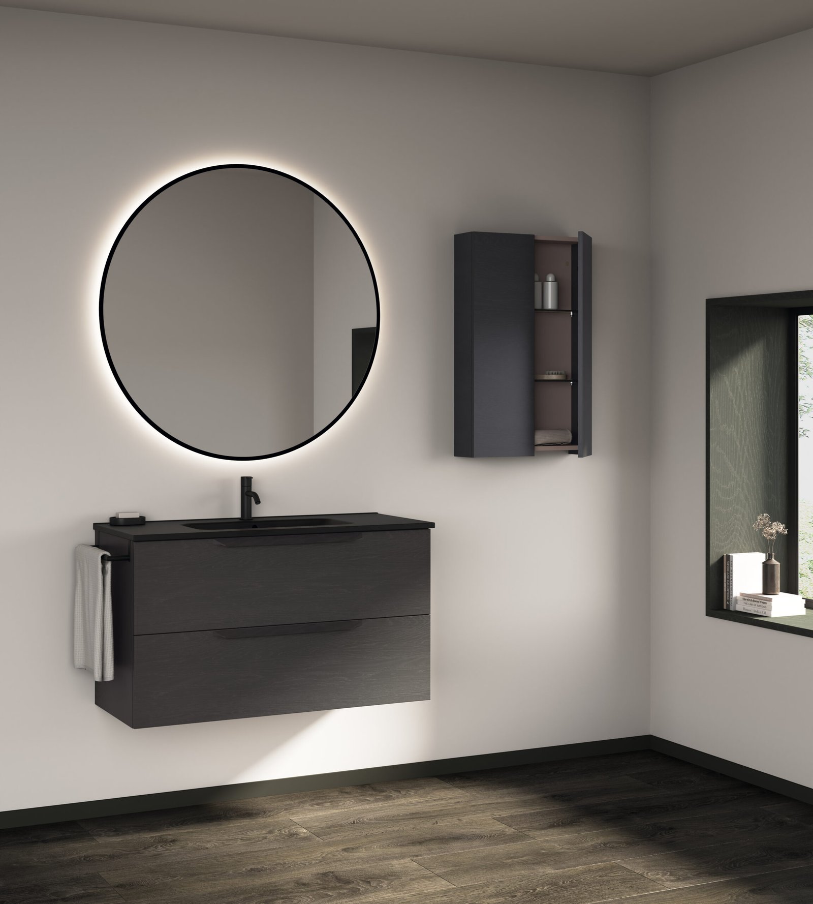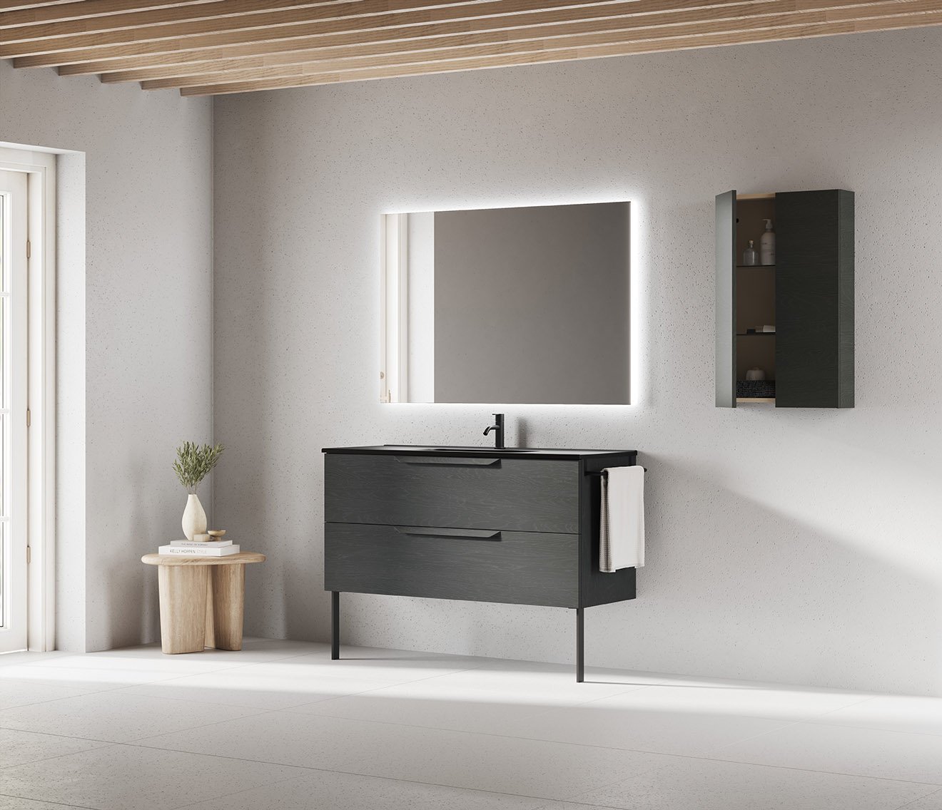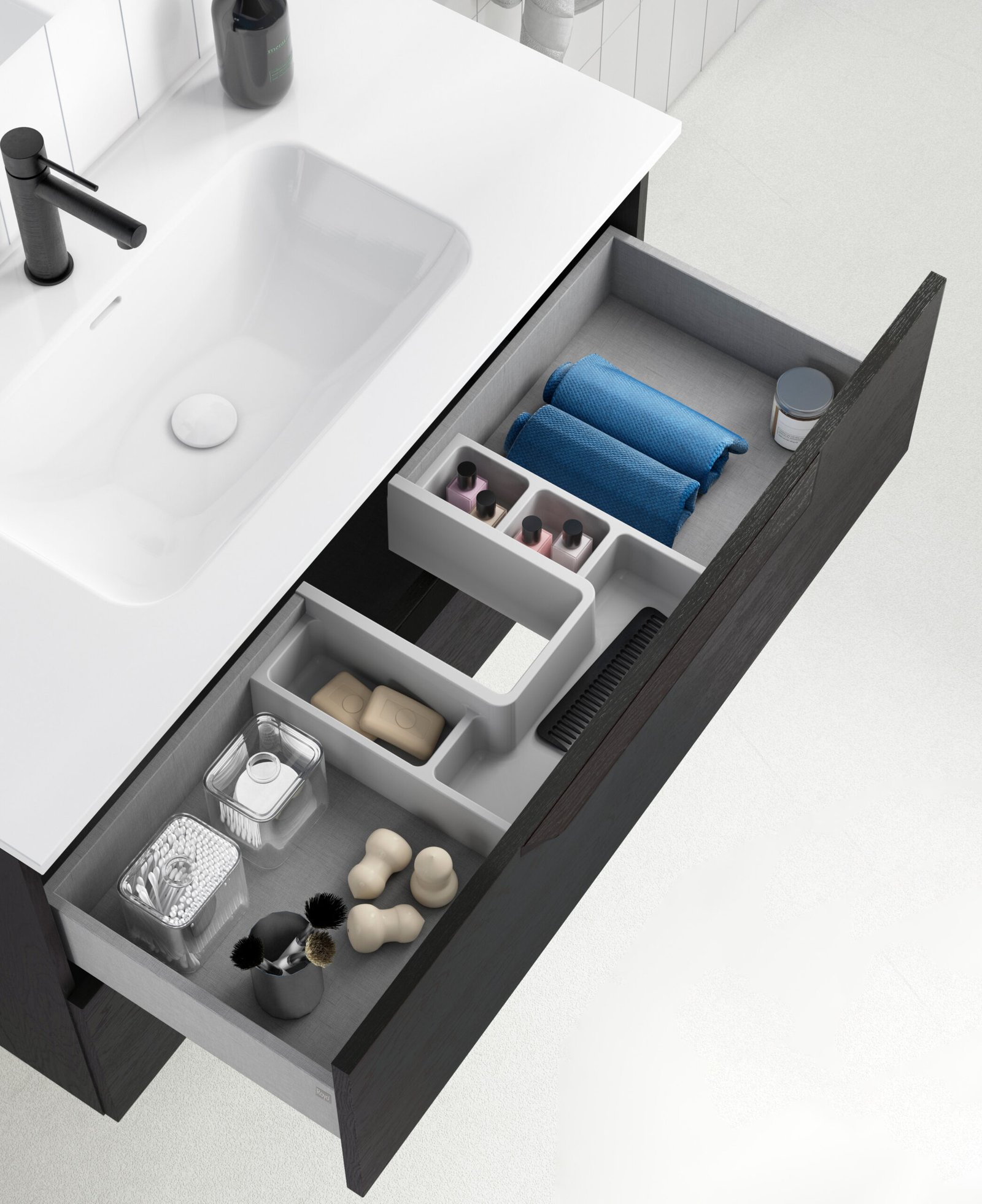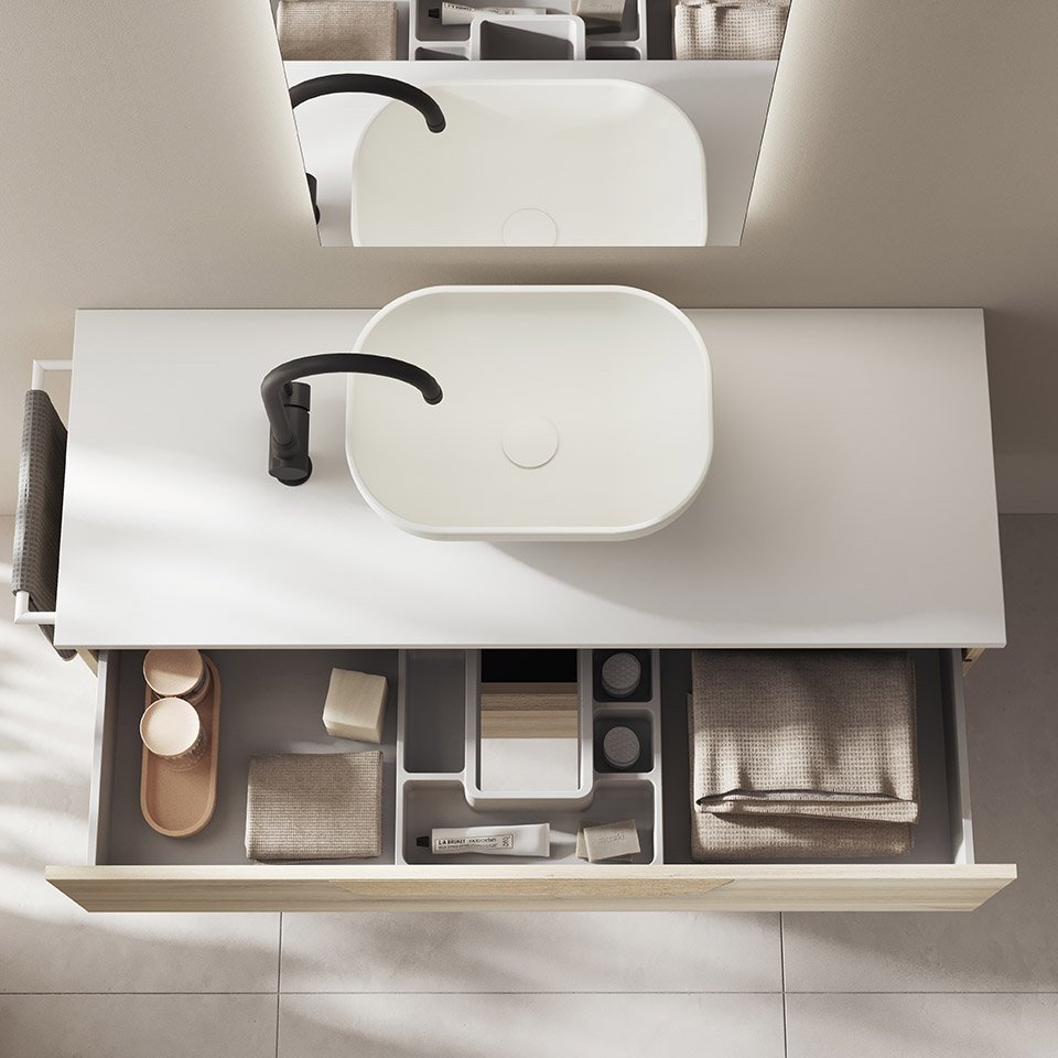 Ideada per donar solucions reals a tota mena de projectes, la família Urban destaca per una enorme amplitud de gamma, oferint versions suspeses i a terra per a aquells que necessiten esprémer al màxim l’emmagatzematge del bany. Al seu interior, la qualitat prèmium es fa palesa: incorpora calaixos amb guies Indaux d’extracció total, un cuidat disseny interior en acabat Tèxtil Gris i un complet organitzador de sèrie per gaudir de l’ordre perfecte dia rere dia.