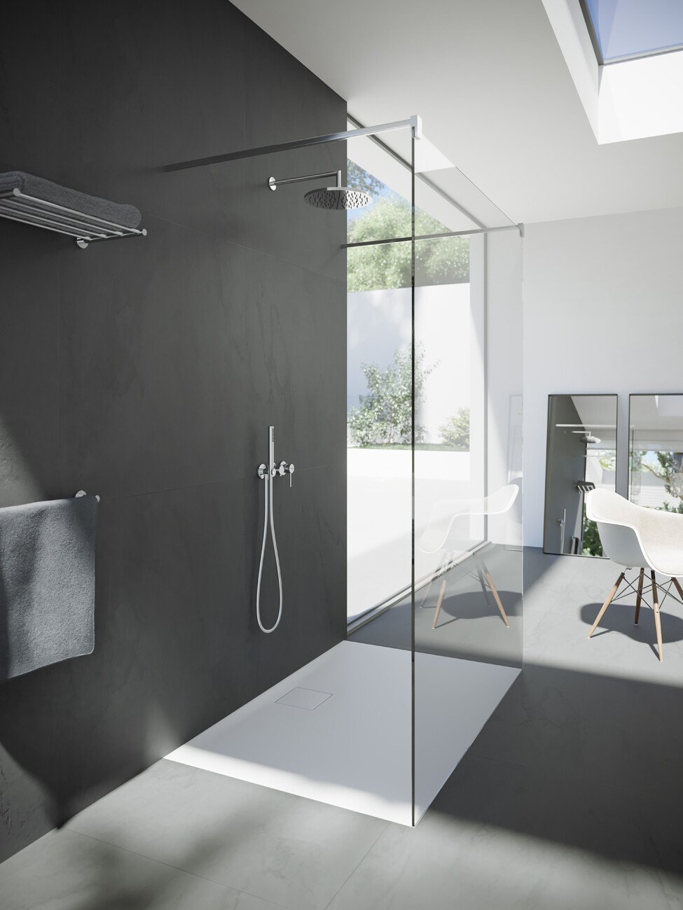 Aposta per les plaques de Gran Format. Com més gran és la peça (per exemple, 120x120cm o 120x278cm), menys juntes hi haurà, evitant l’acumulació de brutícia i floridura.