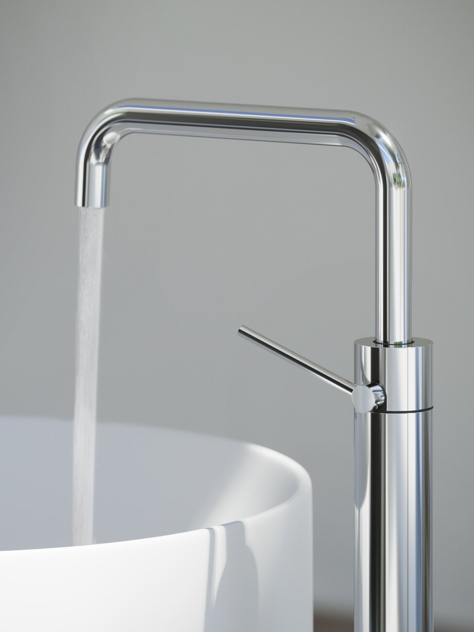 • Aixetes de lavabo de peu (a terra), perfectes per a dissenys exempts.